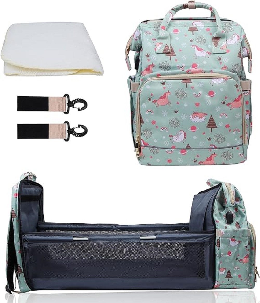 Diese Wickeltasche lässt sich im Handumdrehen in ein komfortables Reisebett umwandeln. Das perfekte und praktische Design sorgt dafür, dass Ihr Baby überall sicher und bequem schlafen kann.