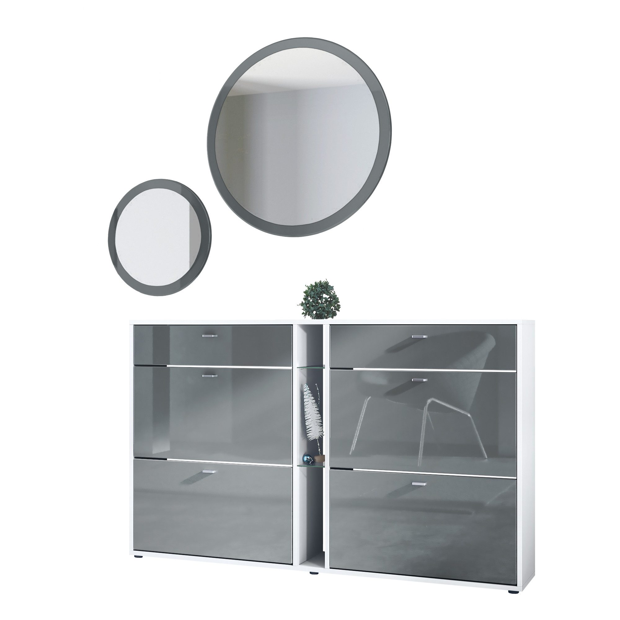 Das Garderoben-Set Florence ist nicht nur ein funktionales Möbelstück, sondern auch eine ästhetische Bereicherung für jeden Eingangsbereich oder Flur. Mit ihrem großzügigen Schuhkipper bietet sie Platz für bis zu 24 Paar Schuhe, während die silberfarbenen Griffe und die edlen Glasablagen das Design veredeln.