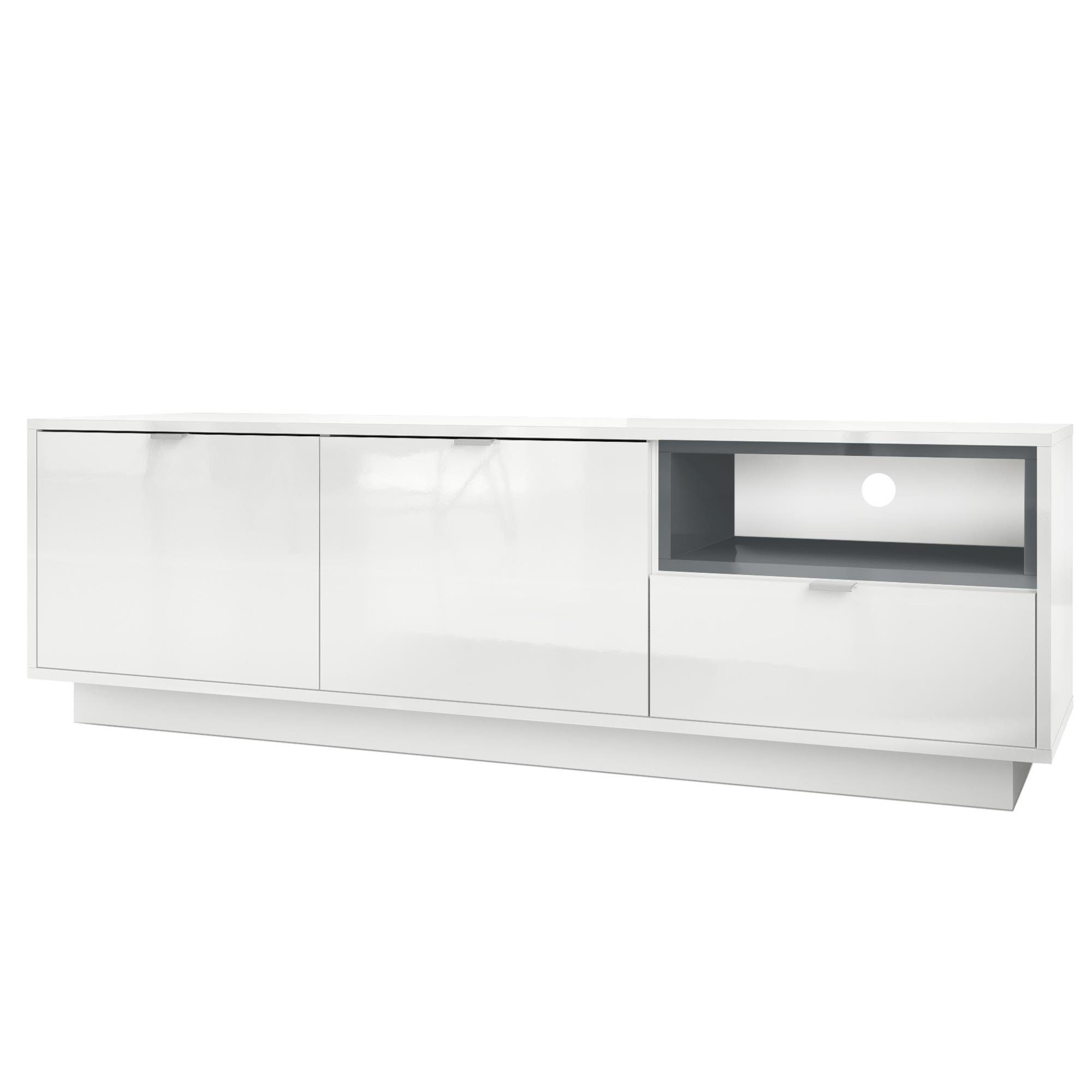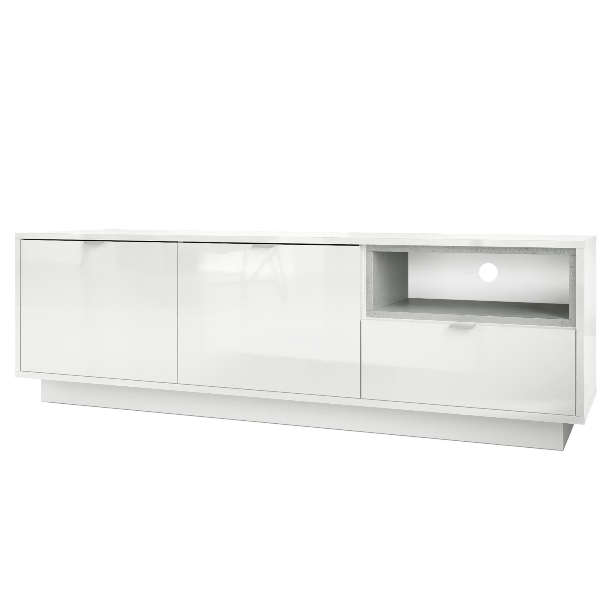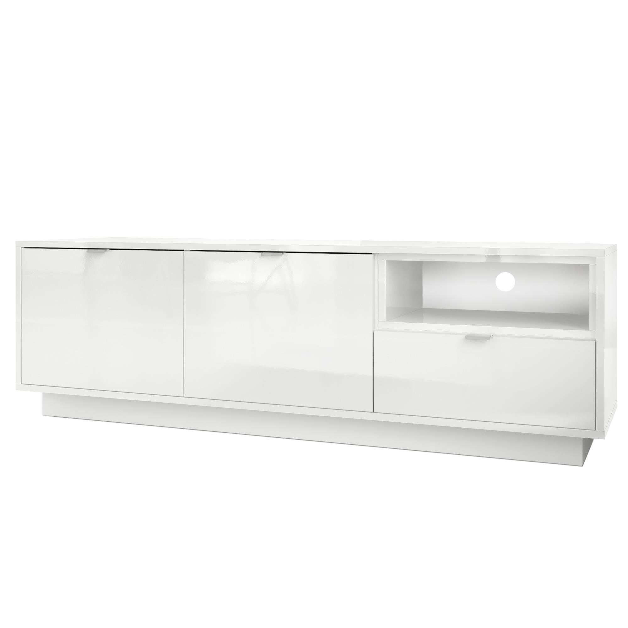 Der glänzende Korpus aus stabiler, melaminbeschichteter Spanplatte verleiht dem TV Board seine Robustheit. Ein farbiger Einsatz aus MDF setzt Deine individuelle Note, während die Türen mit Softclose-Scharnieren sanft schließen. Die Design-Griffe aus hochwertigem Aluminium verleihen dem Möbelstück eine edle Note. Perfekt abgestimmte gedämpfte Unterflurlaufschienen aus Metall sorgen für eine reibungslose Schubladenbewegung.