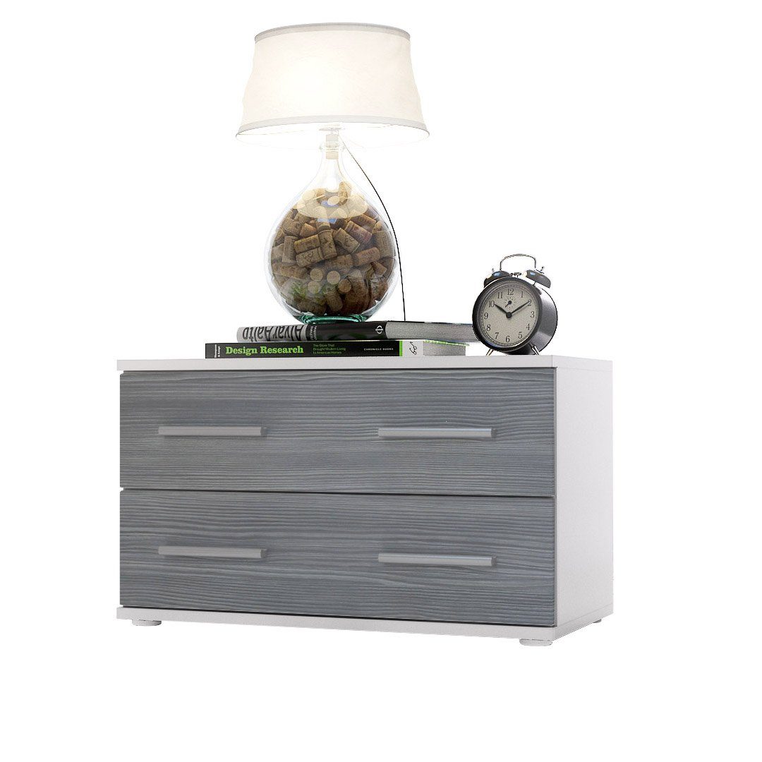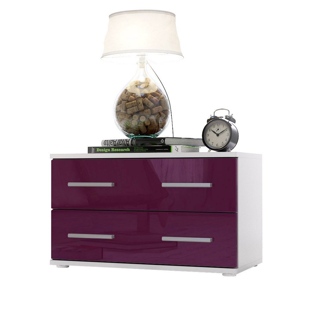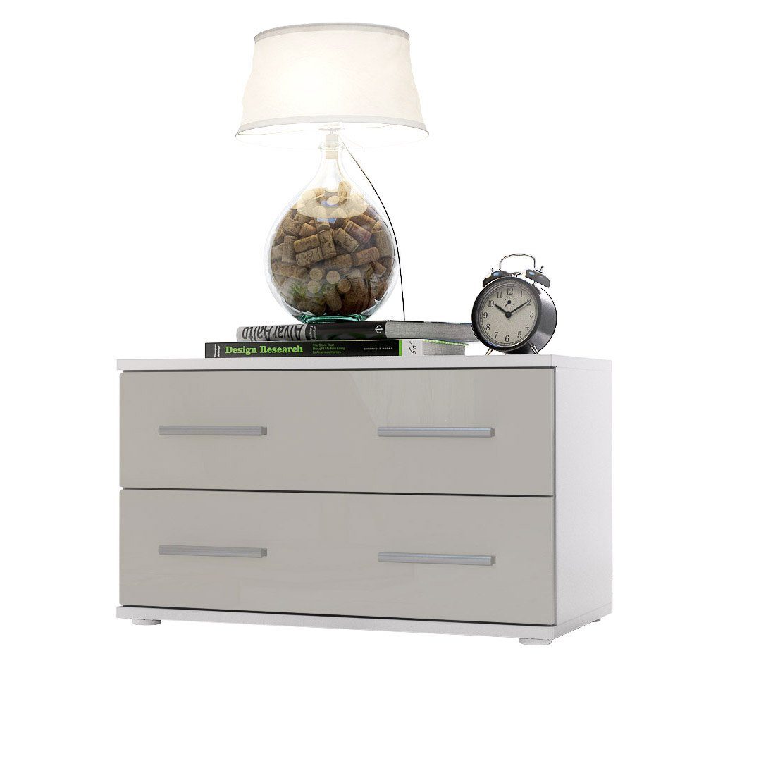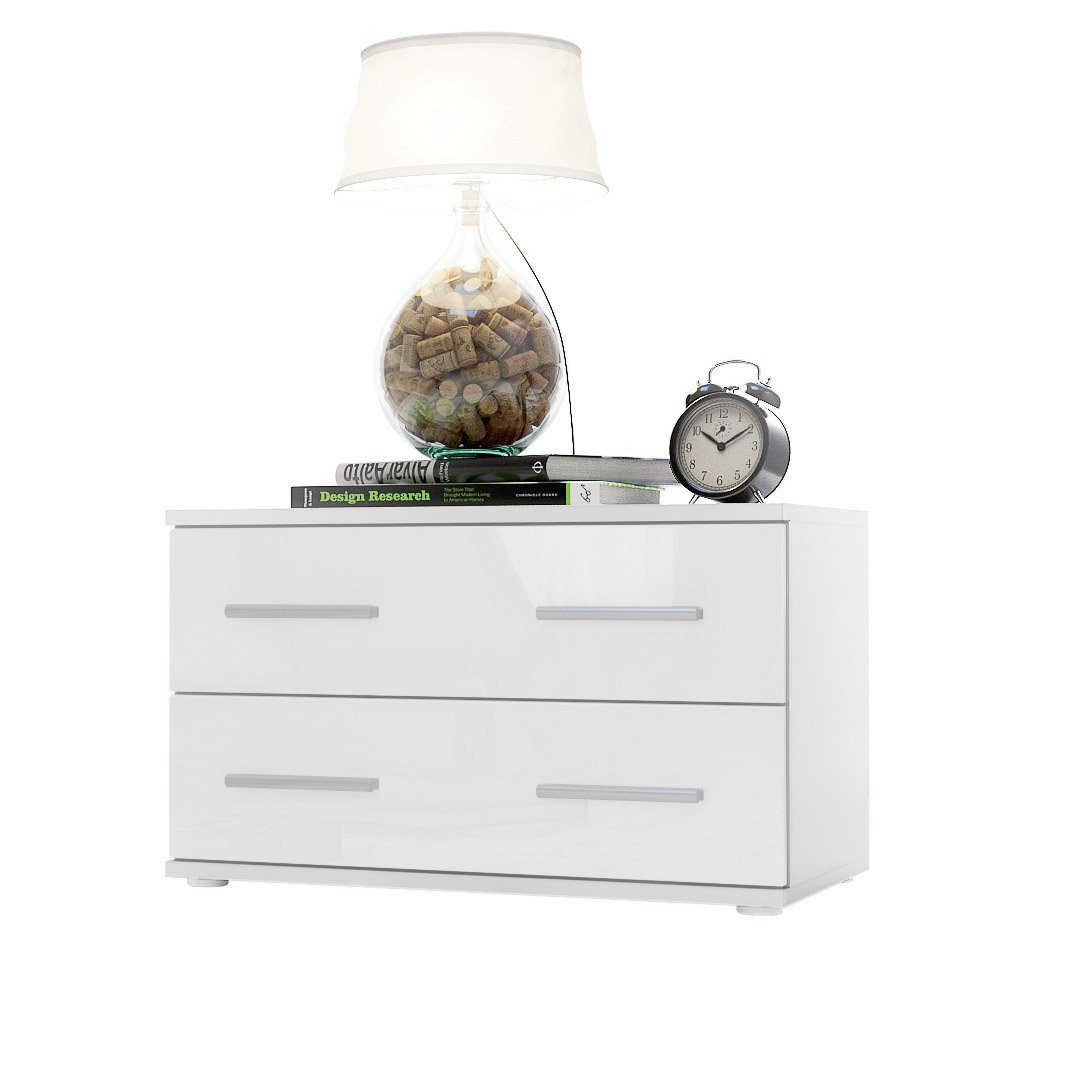 Der Korpus der Bettkommode ist elegant in Weiß matt melaminbeschichtet, was dem Möbelstück eine stilvolle Note verleiht.