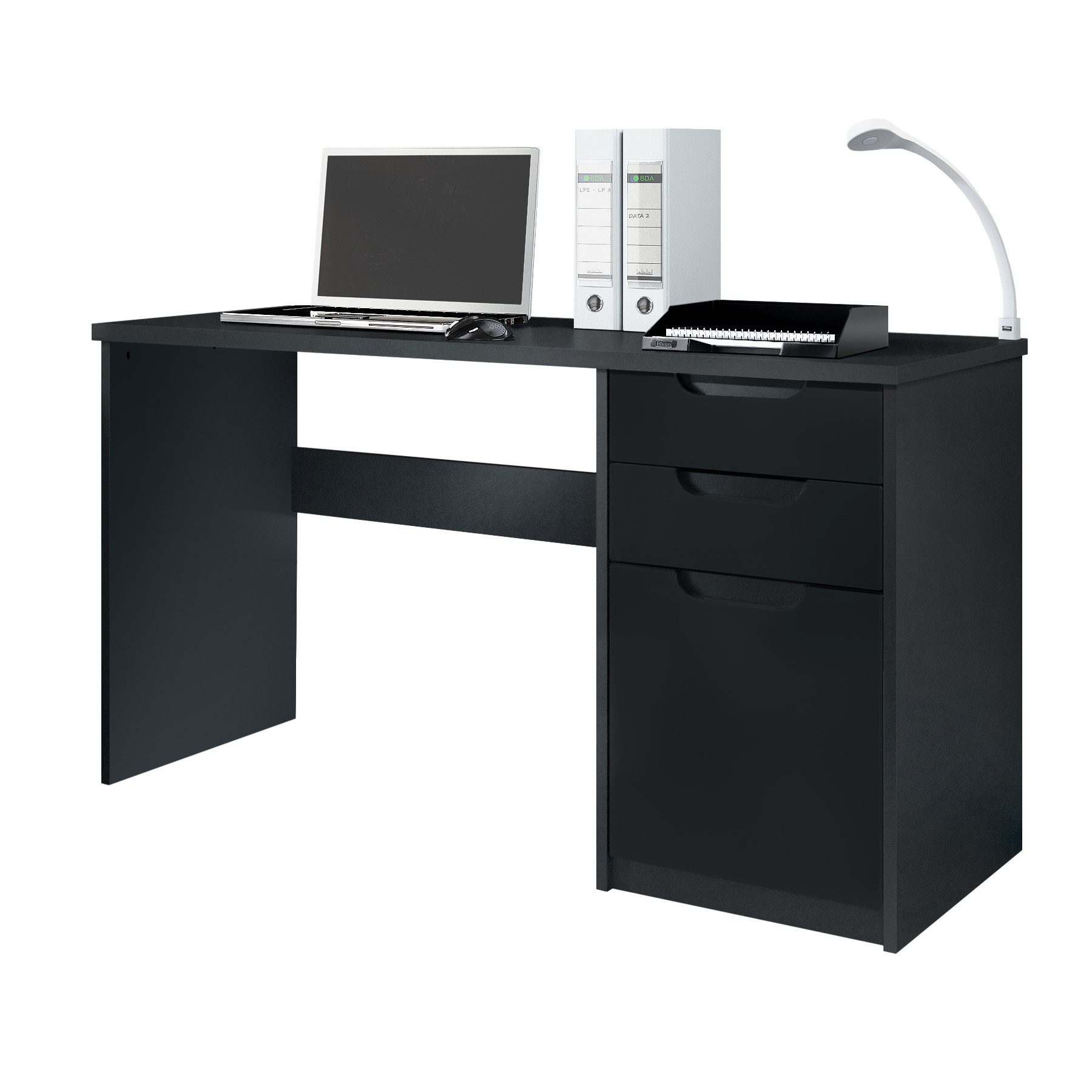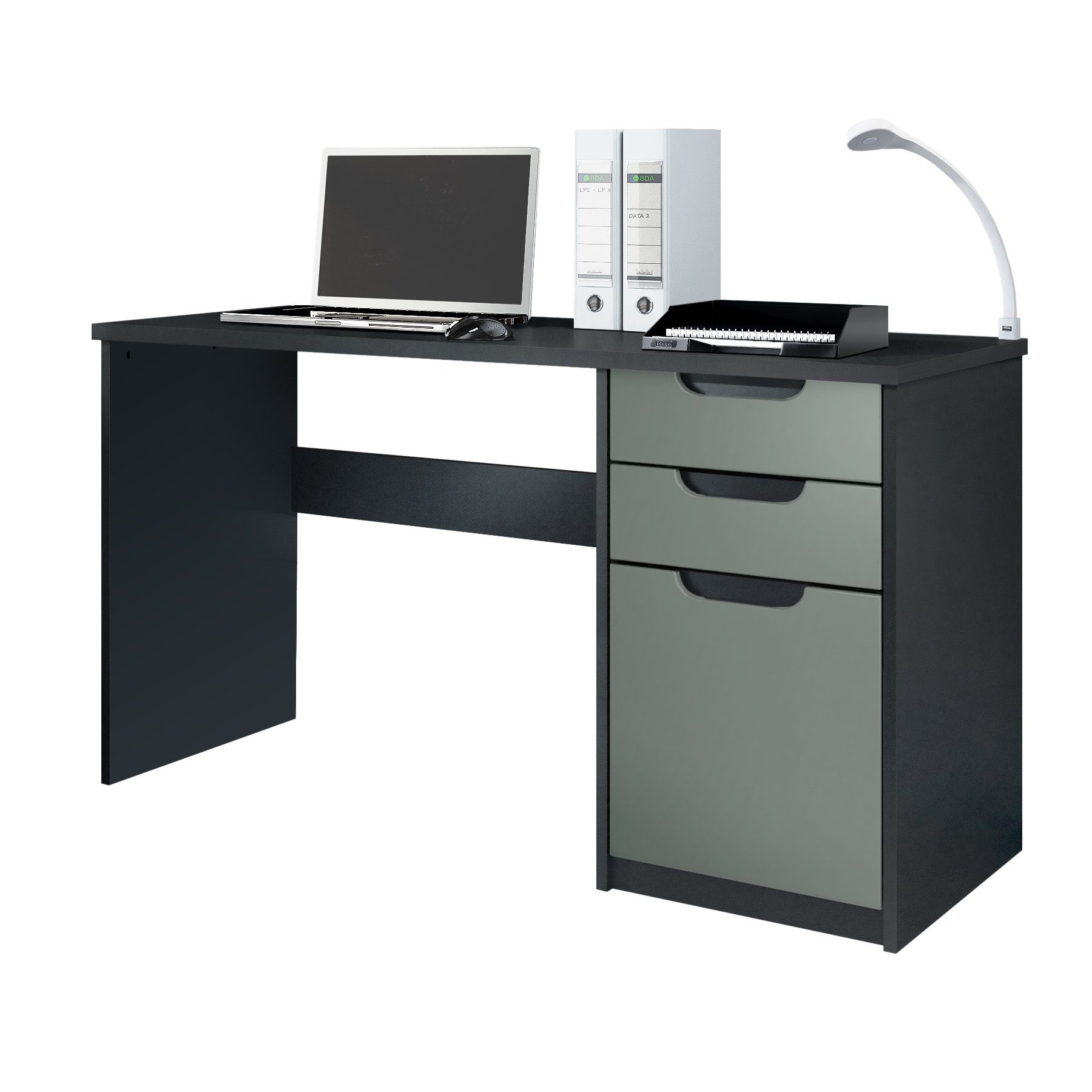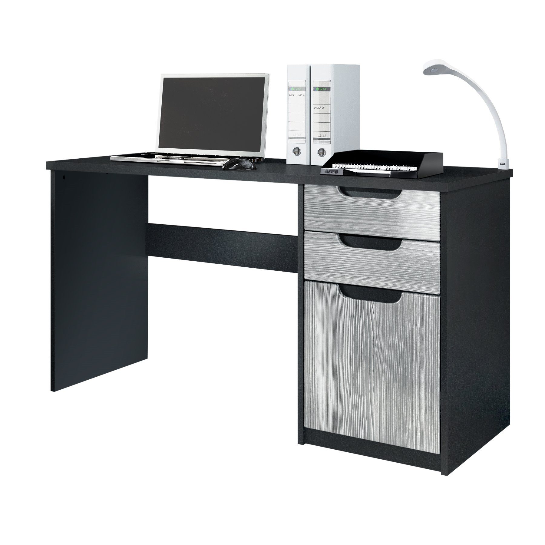 Der Schreibtisch Logan eignet sich perfekt für jedes Arbeitszimmer oder Büro. Der geräumige Schreibtisch mit Stauraum präsentiert sich als praktisches Möbelstück mit modernem Design, hergestellt in Deutschland. Der Arbeitstisch ist mit zwei Schubladen und einer Tür mit einem großen Fach dahinter ausgerüstet. Der Bürotisch ist mit dezenten Griffmulden in Korpusfarbe versehen. Mit der inkludierten Strebe stabilisieren Sie den Schreibtisch mit Schubladen optimal. Eine Rückwand in Holzoptik aus Hartfaserplatten ist im Lieferumfang enthalten.