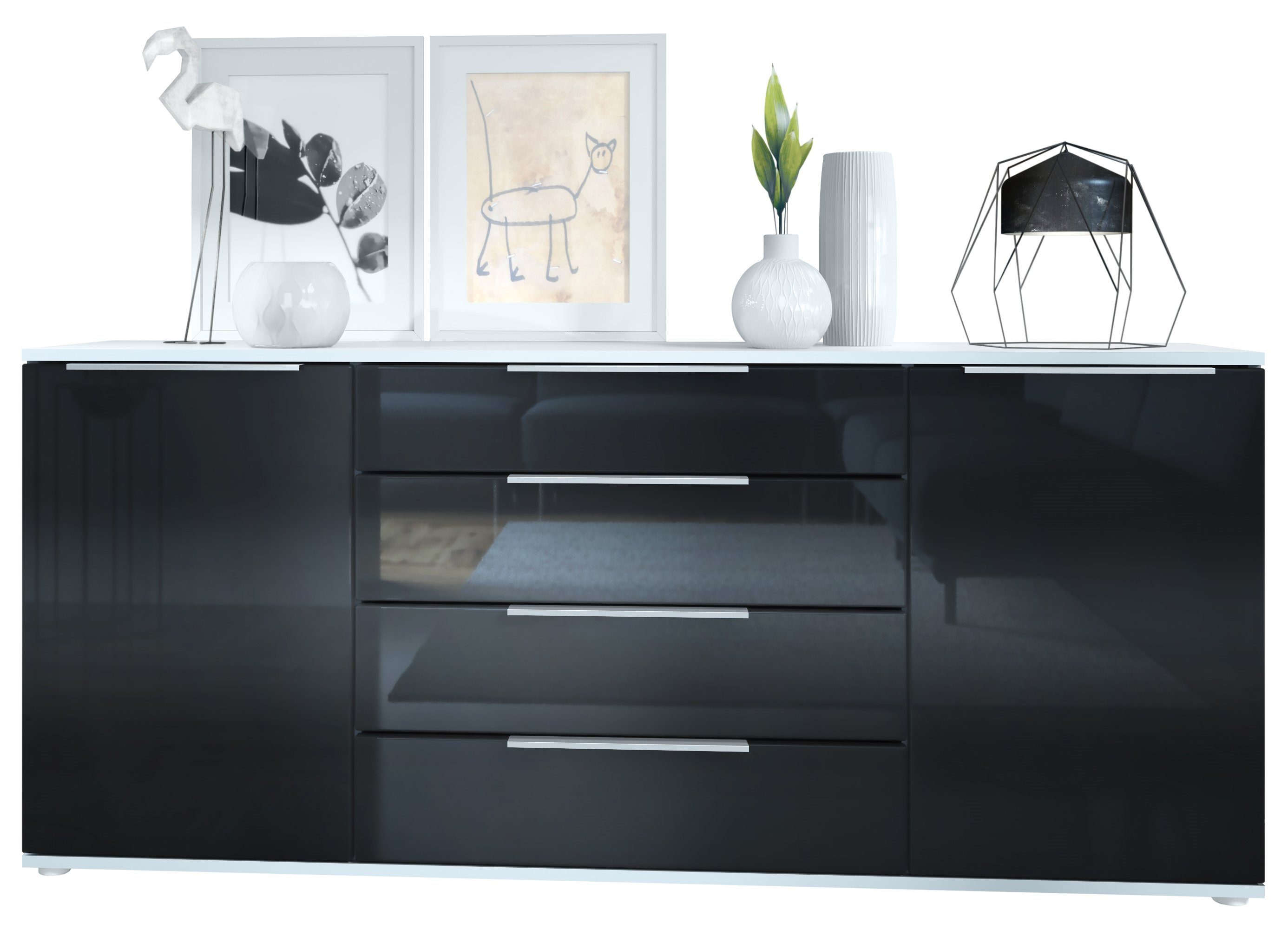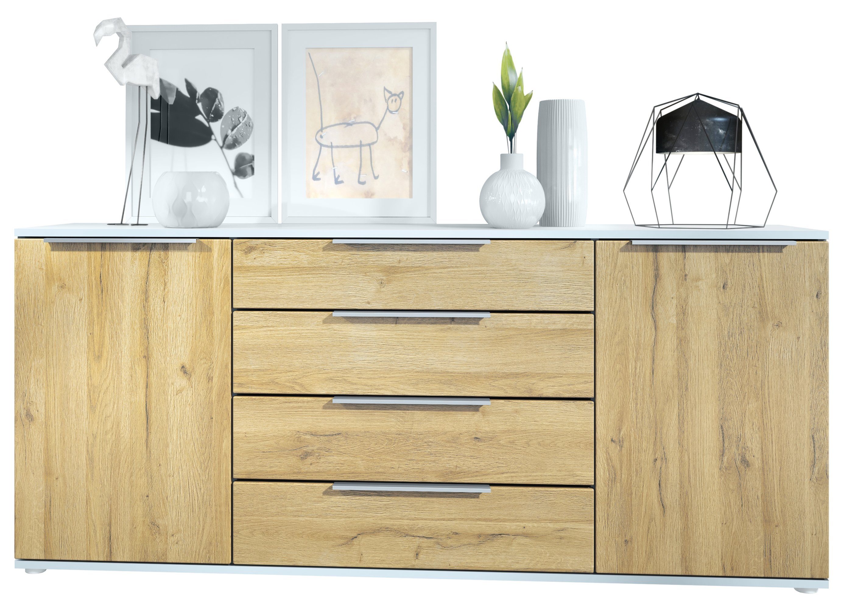 Im Aufbau und der Handhabung ist dieses Möbelstück äußerst benutzerfreundlich und spart nicht an Flächen für Stauraum: Hinter zwei Türen und vier Schubladen finden sich insgesamt 8 großflächige Möglichkeiten, diverse Gegenstände vor neugierigen Augen zu verstecken und in der Wohnung die gewünschte Ordnung wiedereinkehren zu lassen. Verstaue hier z.B. Bücher, Zeitschriften, Ordner, Dekorationsgegenstände, Blu-rays, Multimedia-Geräte oder jegliche andere Objekte deiner Wahl.