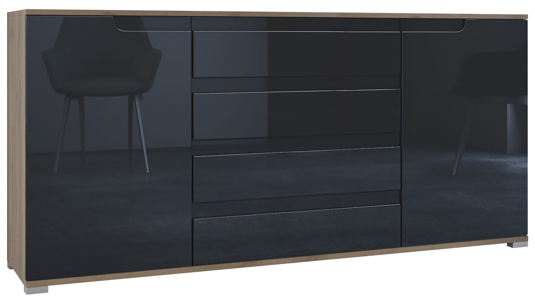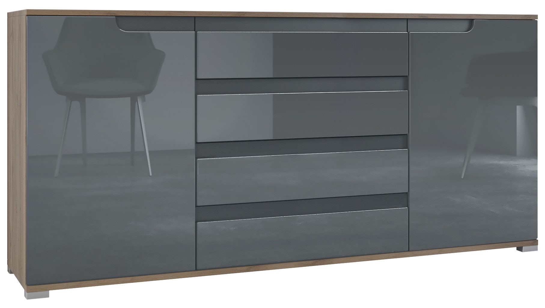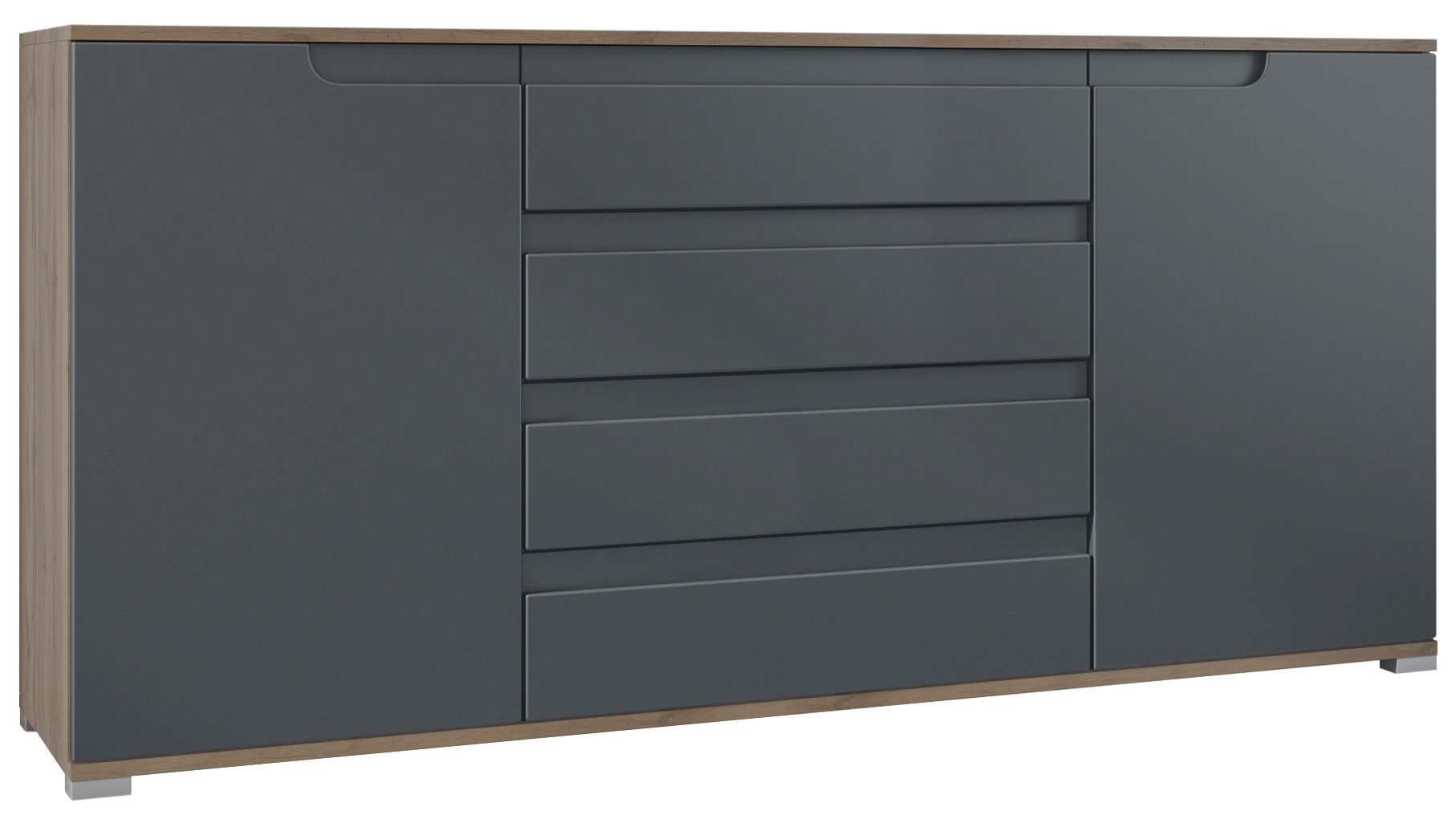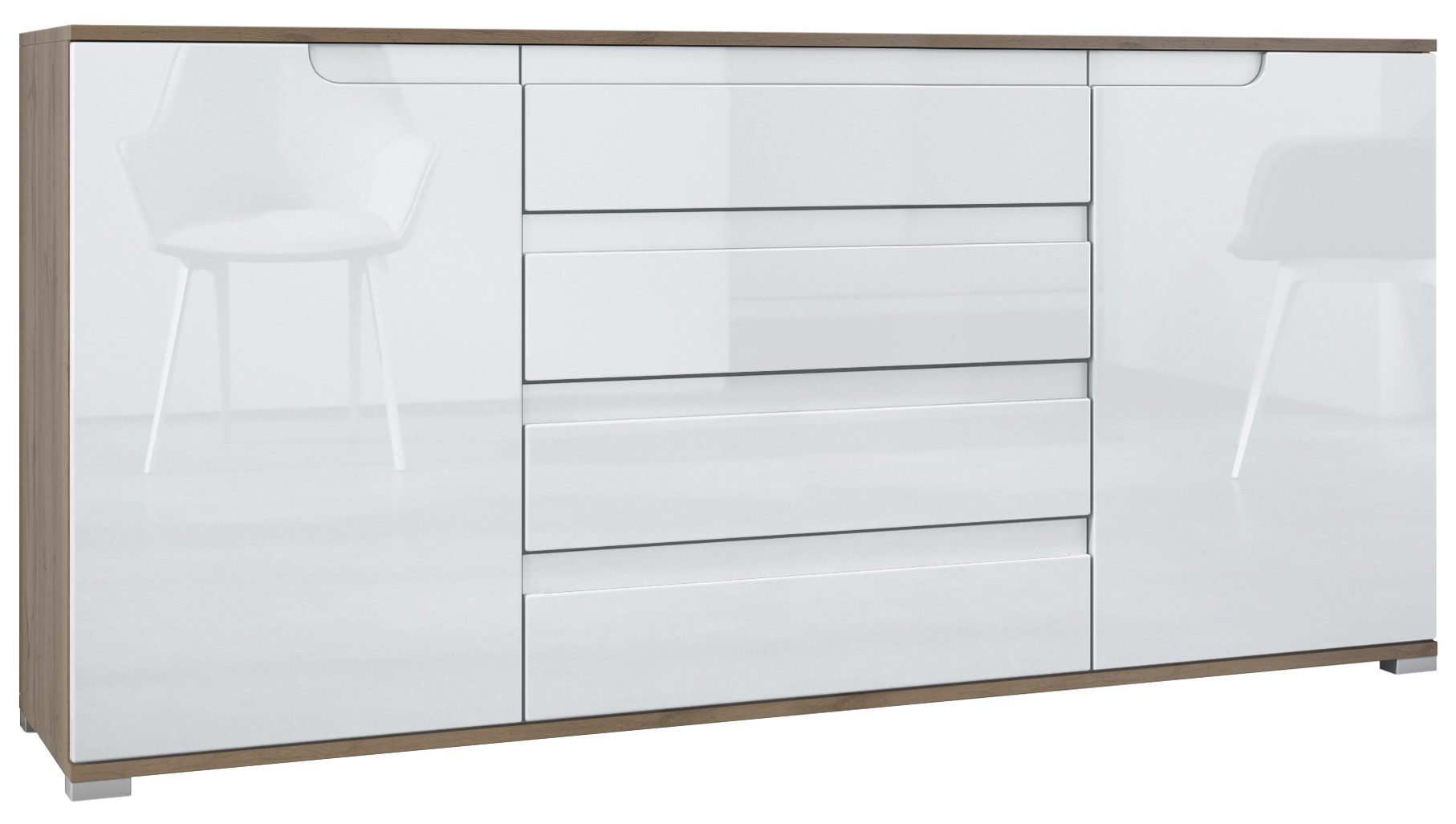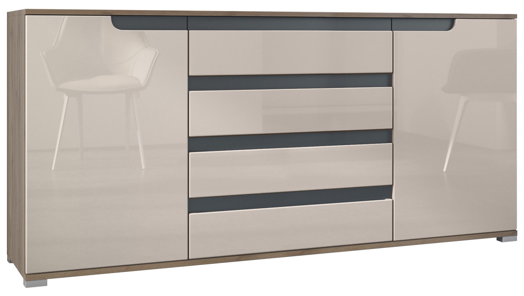 Der Korpus des Sideboards ist in Eiche Evoke gehalten. Wählen Sie die passende Frontfarbe für Ihren Wohnstil: edle Hochglanz-Optik, natürliche Holztöne oder moderne matte Farben.