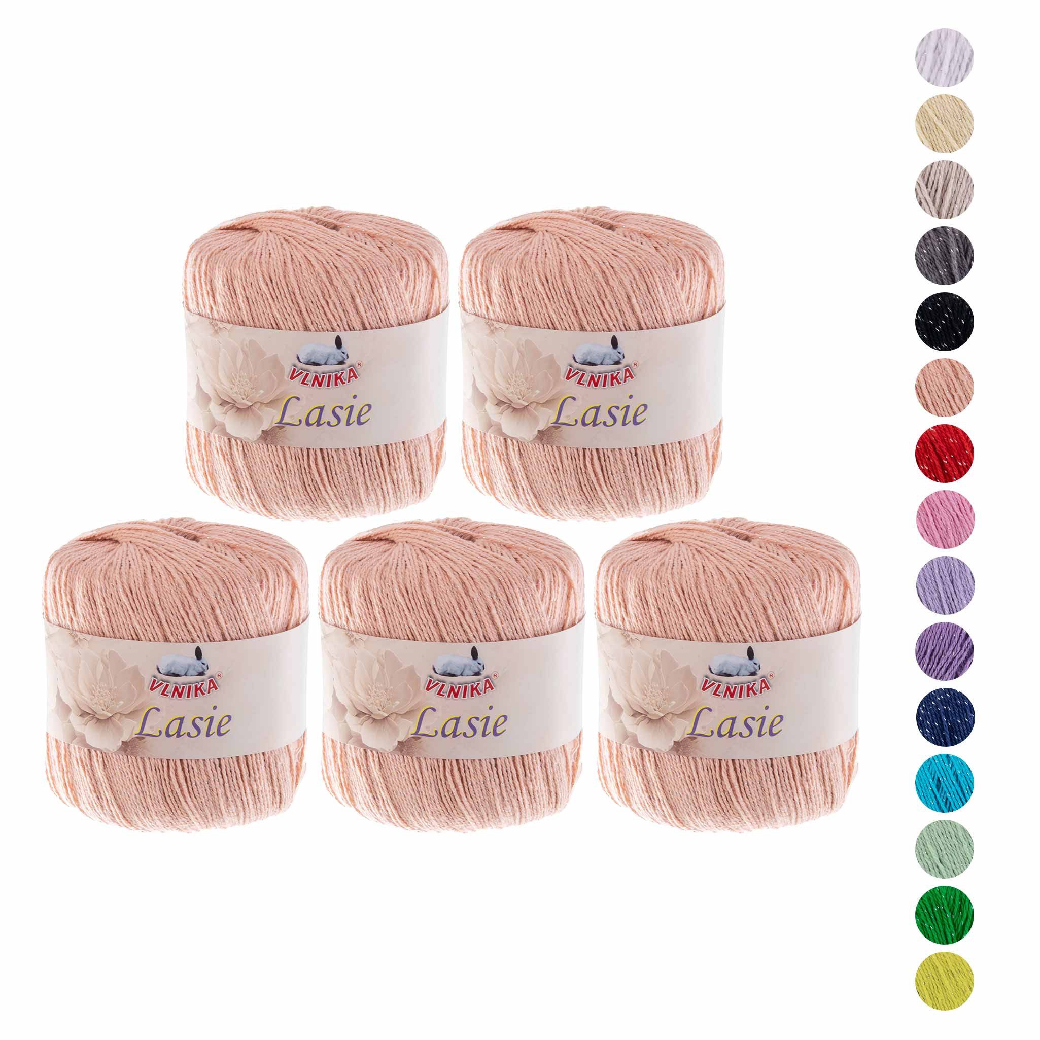 Lasie ist ein bezauberndes Sommergarn mit Glitzereffekt. Es verleiht deinen Strick- und Häkelprojekten einen einzigartigen, funkelnden Touch. Ob du verspielte Sommertops, leichte Pullover oder modische Accessoires kreierst – mit diesem besonderen Garn wirst du zum Blickfang.