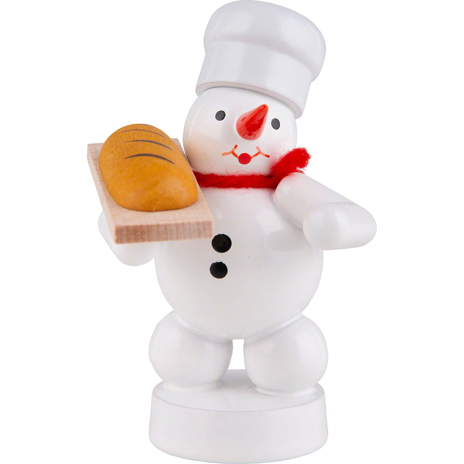 Dekofigur Schneemann Bäcker mit Brot (8cm) von Zenker Volkskunst
