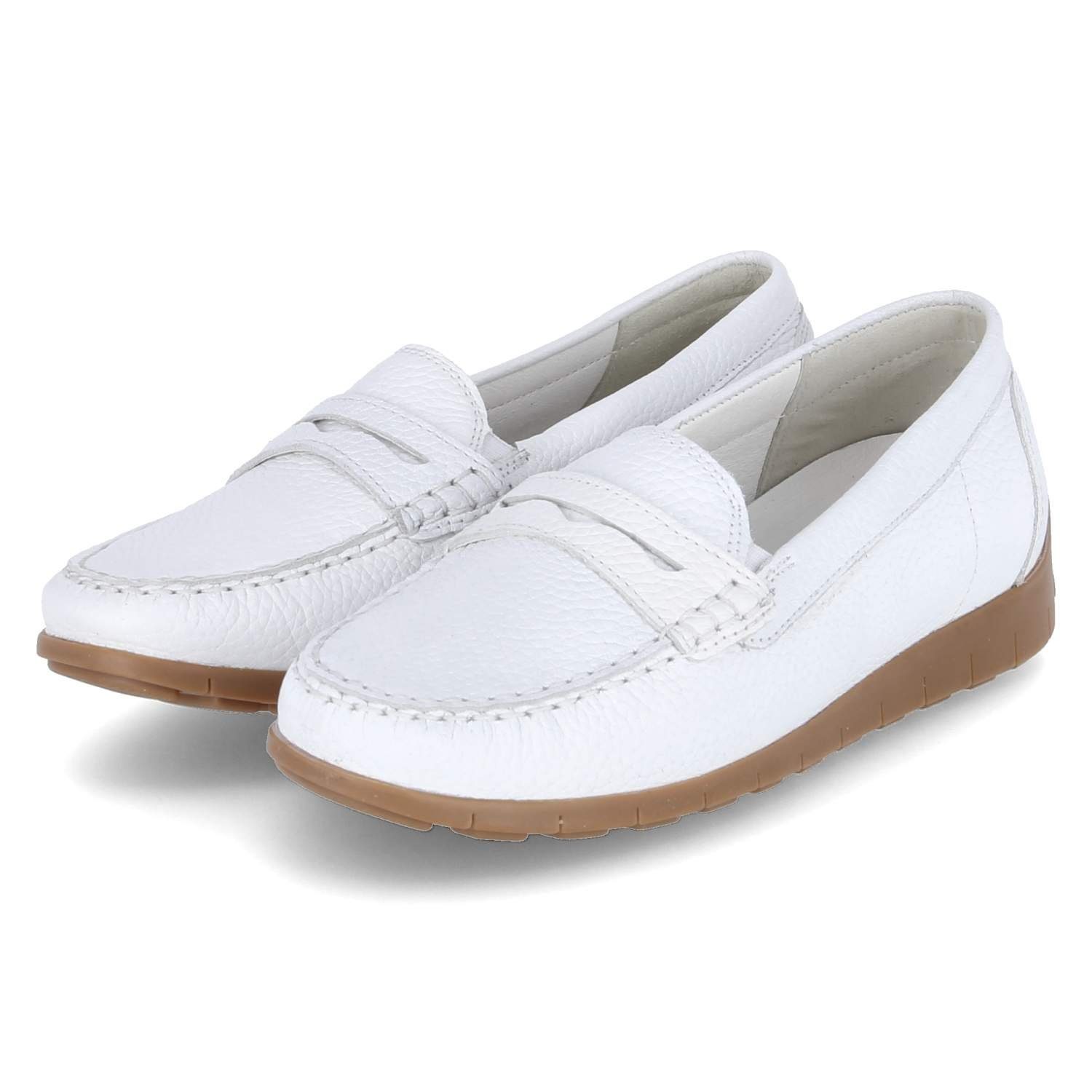 Die Waldläufer Damen Slipper/Mokassins in strahlendem Weiß aus hochwertigem Glattleder bieten sowohl Stil als auch Komfort für den ganzen Tag.