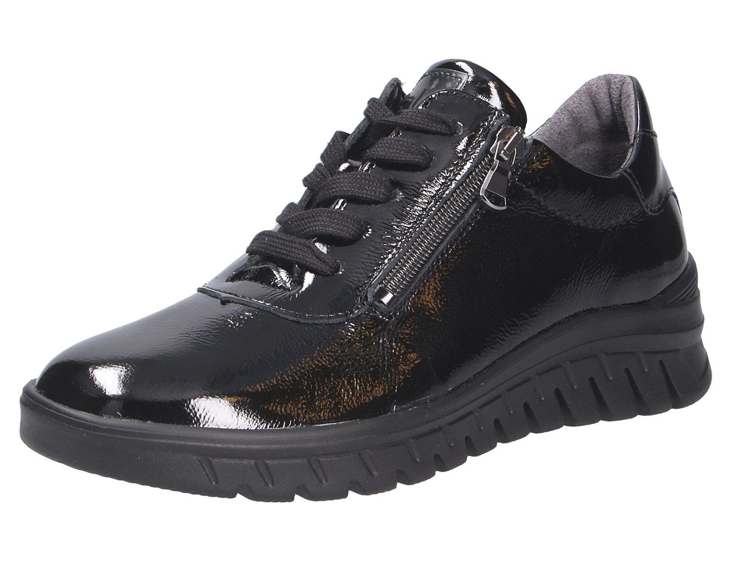 Schöner Comfort Damenschnürschuh der Marke Waldläufer aus einem hochwertigem Lackleder. Ebenso glänzt das Modell durch eine weiche Lederausstattung. Die mit einem weichen Polster unterlegte lederbezogene Einlegesohle sorgt für ein angenehmes Fußklima, ist auswechselbar und somit für lose Einlagen geeignet. Auf diesen Schuh freuen sich besonders etwas breitere Füße:Die Weite H bietet hier ausreichend Platz. Der Keilabsatz hat eine Höhe von cirka 1 cm ,die aus einem weichen PU-Material bestehende Laufsohle schont die Gelenke und federt jeden Tritt optimal ab. Über den Schnürverschluß ist eine optimale Anpassung an den Fuß möglich. Durch die runde Schuhspitze wirkt der Schuh dezent am Fuß und bietet genügend Platz für die Fußzehen. Die Розмір взуття fällt regulär aus.