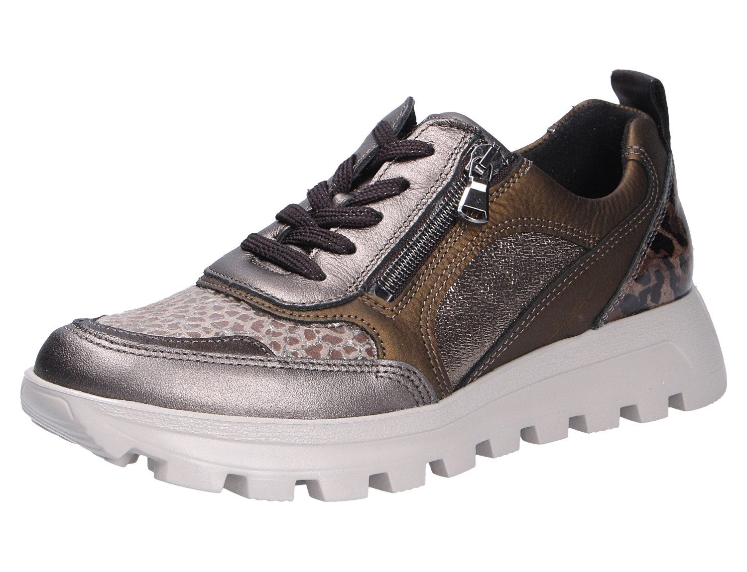 Schöner Comfort Damenschnürschuh der Marke Waldläufer aus einem hochwertigen Materialmix aus Leder und Textil. Auch die textile Innenverarbeitung überzeugt durch ihre angenehm weiche Beschaffenheit. Durch die auswechselbare Decksohle ist es möglich, eigene Einlagen zu verwenden. Der Schnitt ist für breitere Füße (Weite H) geeignet. Der Absatz ist durchgehend flach ,die aus einem weichen PU-Material bestehende Laufsohle schont die Gelenke und federt jeden Tritt optimal ab. Über den Schnürverschluß ist eine optimale Anpassung an den Fuß möglich. Durch die runde Schuhspitze wirkt der Schuh dezent am Fuß und bietet genügend Platz für die Fußzehen. Die Розмір взуття fällt regulär aus.