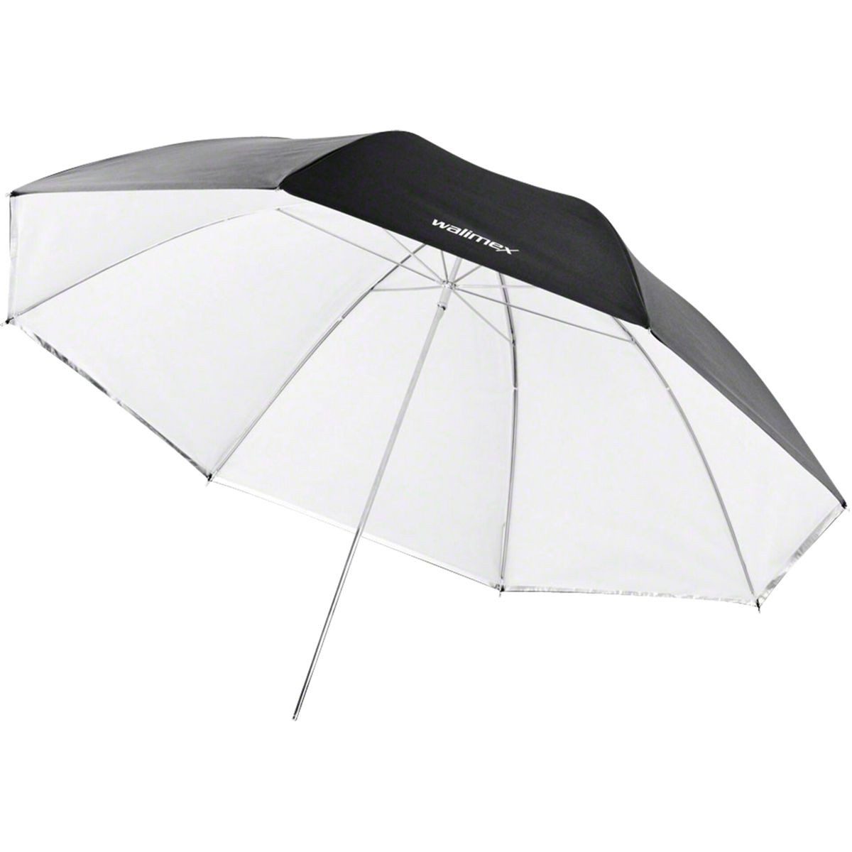 Dieser Schirm von Walimex pro ist besonders praktisch, denn er ist zugleich Reflexschirm und Durchlichtschirm. Er besteht aus zwei Schichten: der äußeren Reflexschicht, die innen Silber und außen Schwarz beschichtet ist, und der inneren weißen Durchlichtschicht. Um den Schirm von einem Reflexschirm in einen Durchlichtschirm zu verwandeln können Sie die äußere Schicht ganz einfach abnehmen.