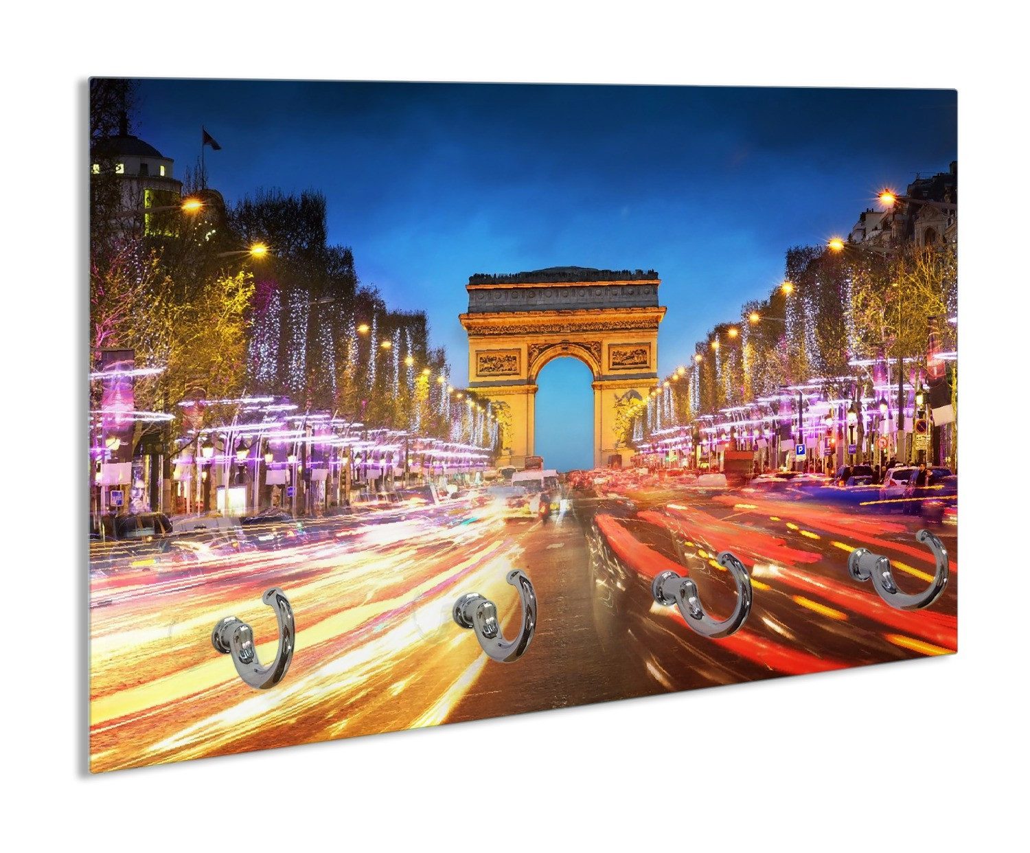 Wallario Handtuchhalter Arc de triomphe in Paris bei Nacht, aus Glas mit 4 Metallhaken