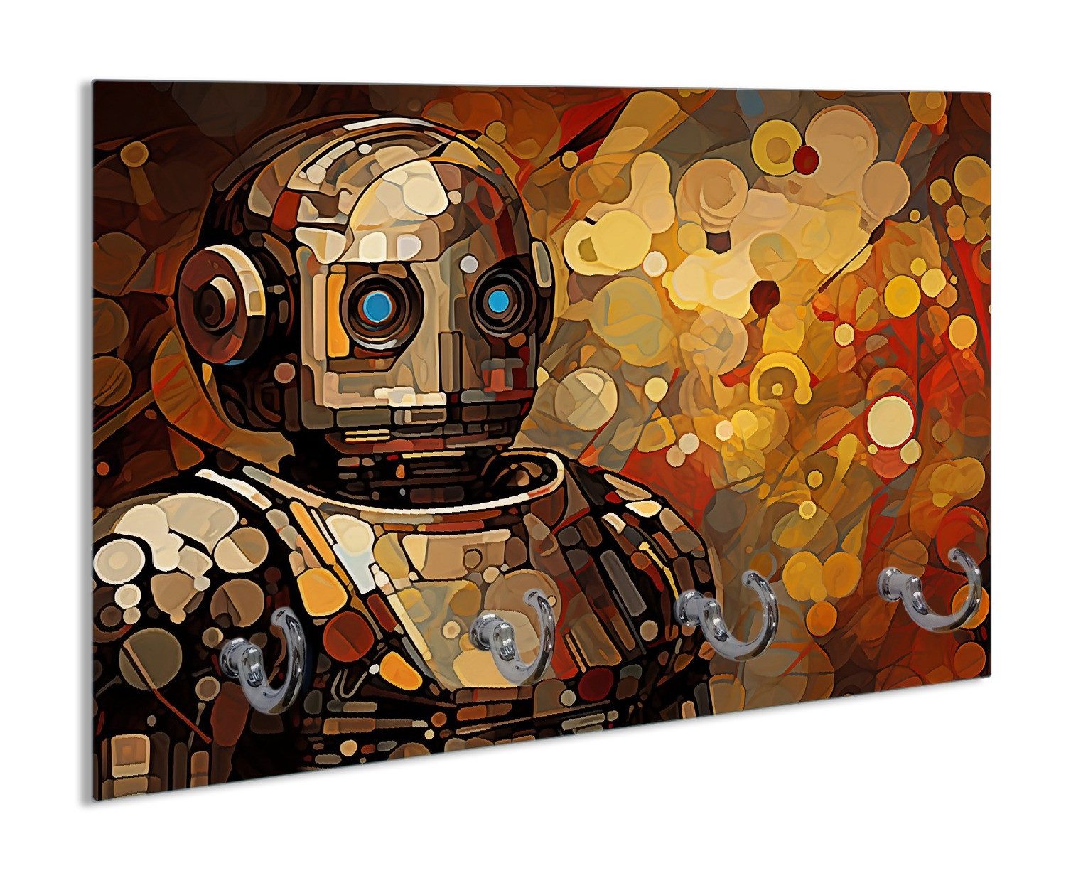 Ein lebhaftes Porträt eines Roboters, der vor einem Hintergrund steht, der an die warmen Farben des Herbstes erinnert. Die detailreiche Darstellung des Roboters, dessen einzelne Bestandteile kunstvoll zusammengesetzt sind, verbindet die Welt der Technik mit der organischen Schönheit der Natur. Die Darstellung reflektiert die zunehmende Verschmelzung von Technologie und Alltagsleben.