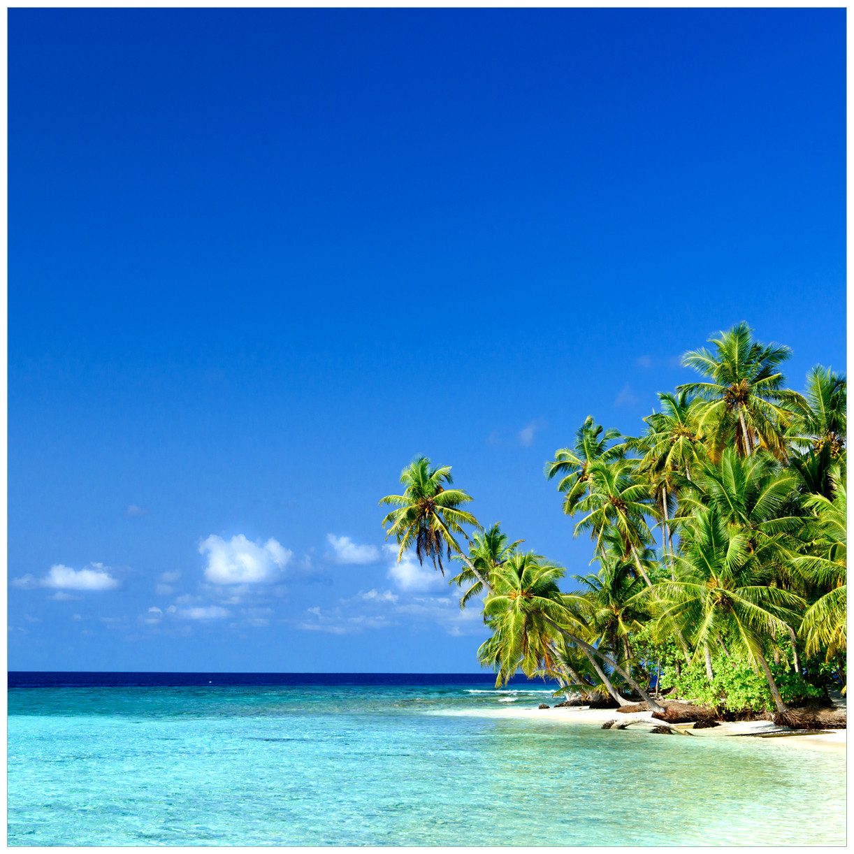 Wallario Möbelfolie Blauer Himmel weißer Strand Palmen und das tiefblaue Meer