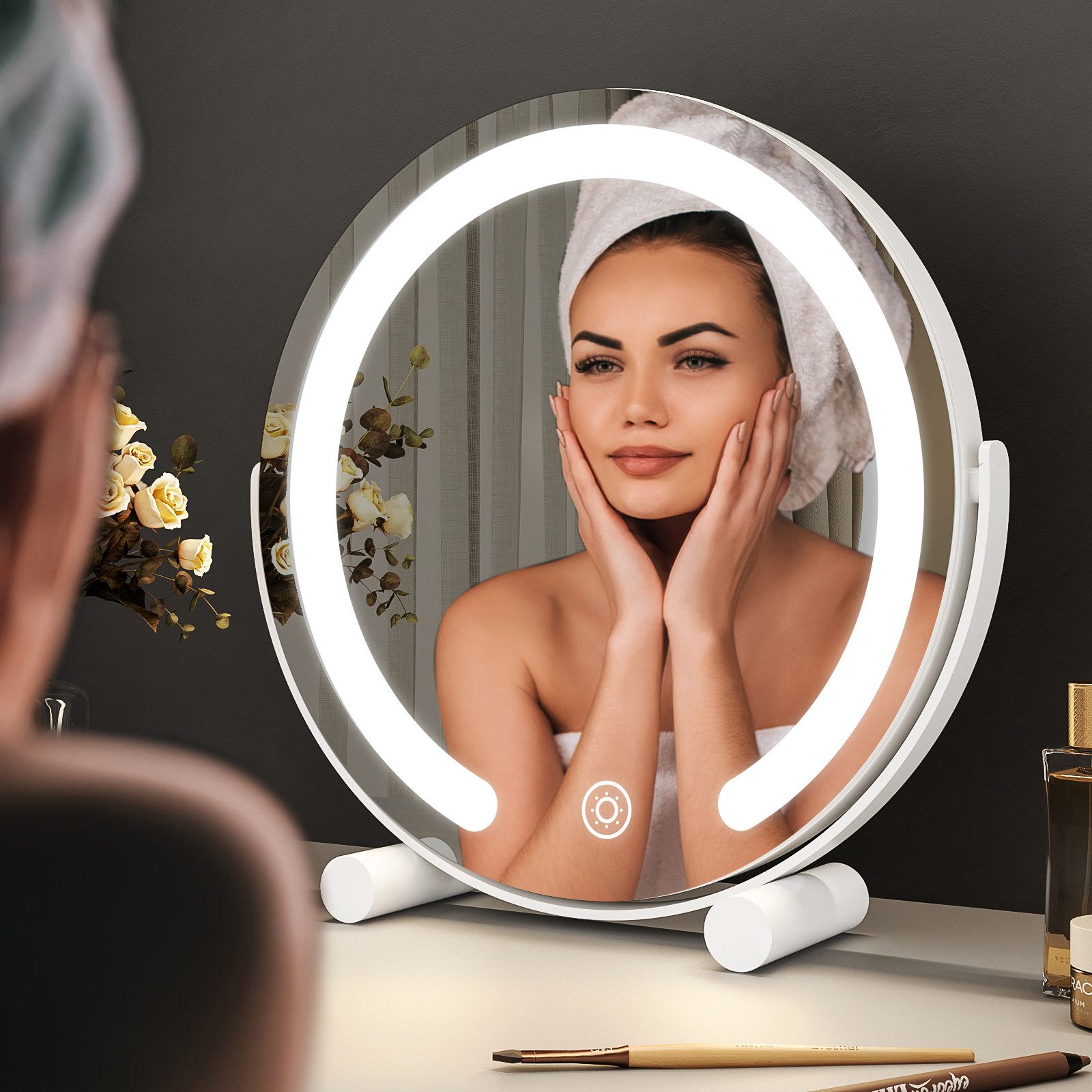 Schminkspiegel mit Beleuchtung für tisch Kosmetikspiegel 3Lichtfarben Dimmbar Touch