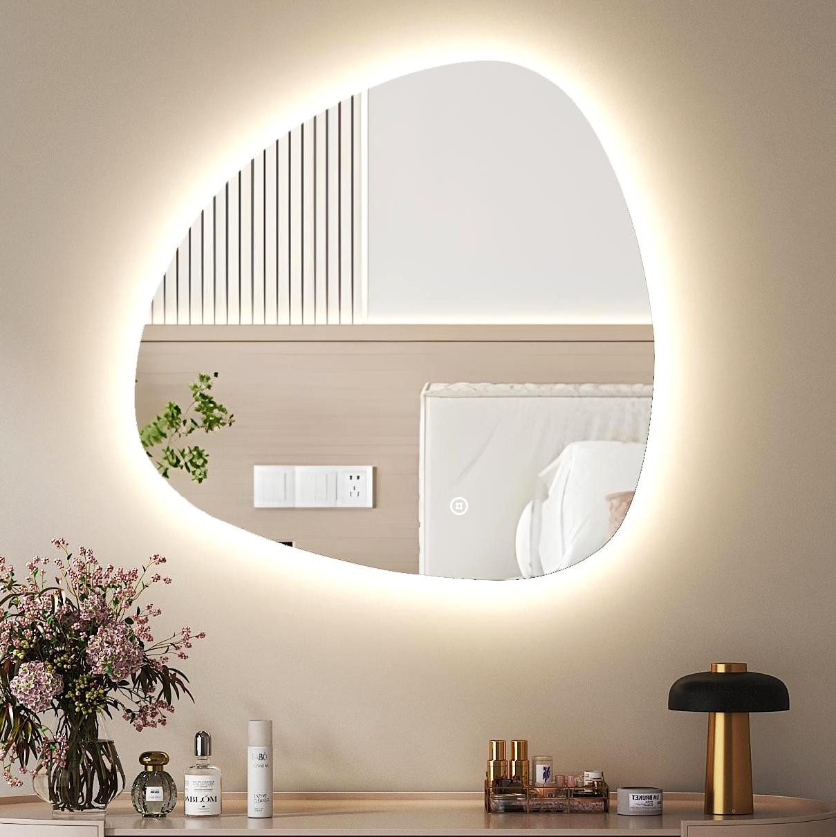 WDWRITTI LED Spiegel mit Speicherfunktion 3Lichtfarben, Dimmbar Steinform 80x80cm