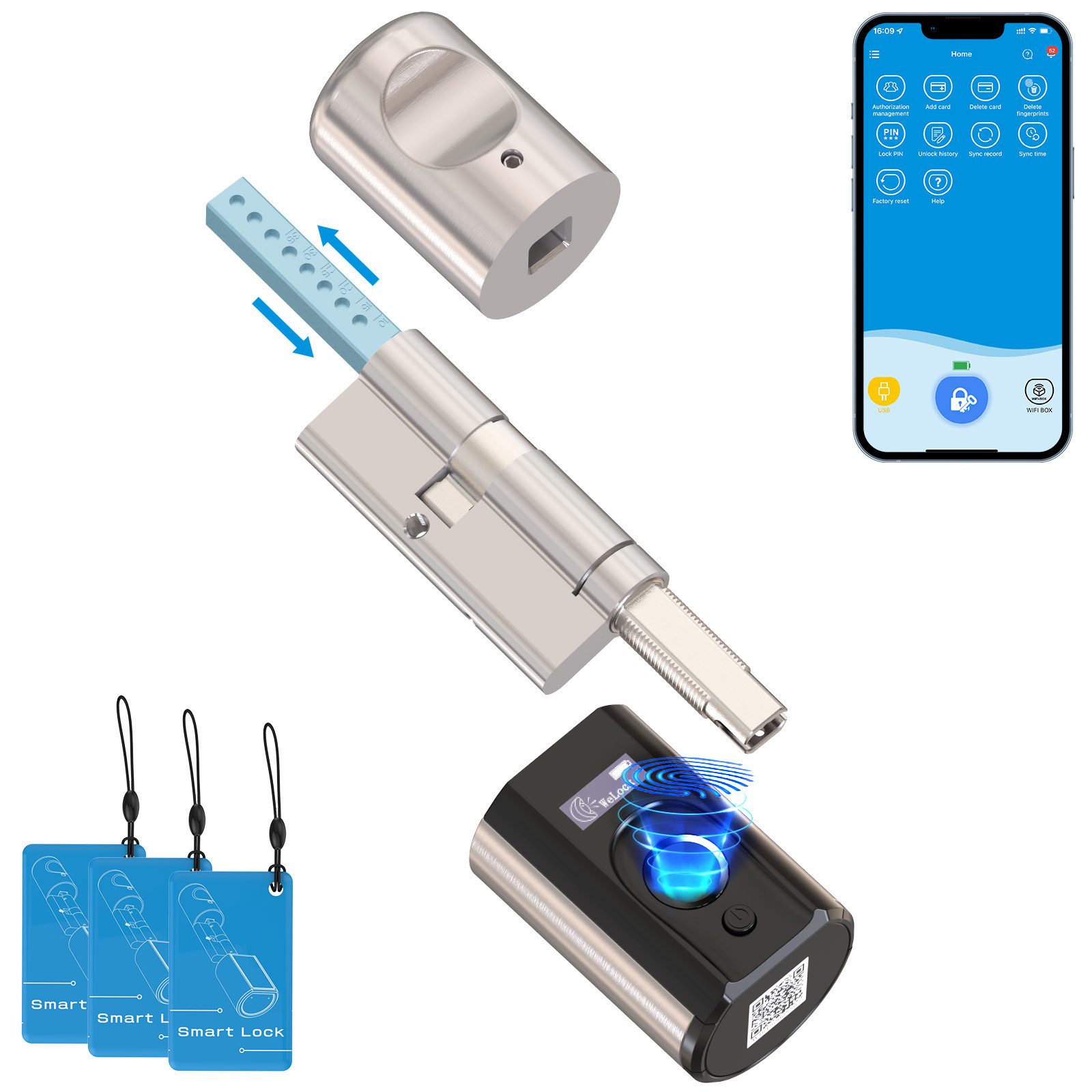 Art Bedienung | Fingerabdruck-Entsperrung RFID-Karten-Entsperrung App-Steuerung Fernsteuerung (zusätzlicher Kauf der WELOCK WIFIBOX erforderlich) |