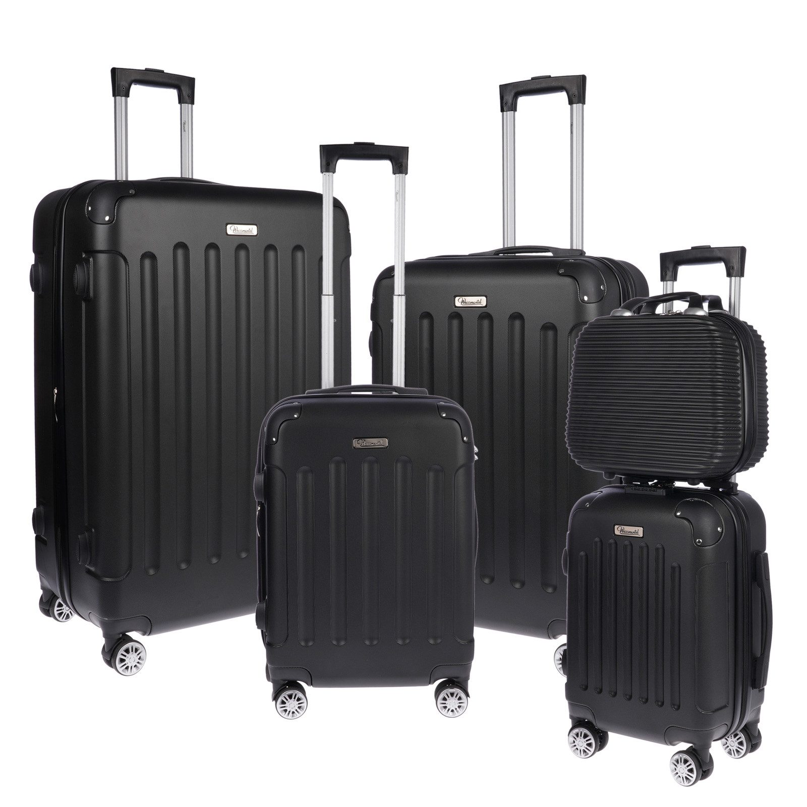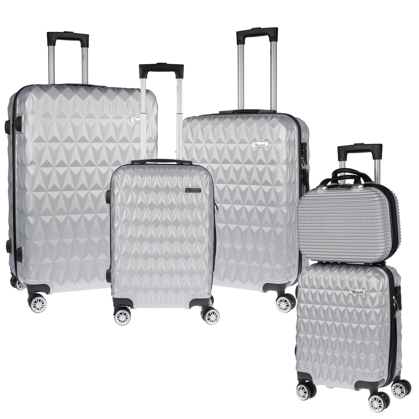 Reisekoffer im 5 teiligen Kofferset mit den Koffergrößen im Durchmesser Handgepäckkoffer 55cm, mittlerer Koffer 68cm, großer Koffer 78cm, kleiner Koffer 45cm, Kulturtasche 28cm