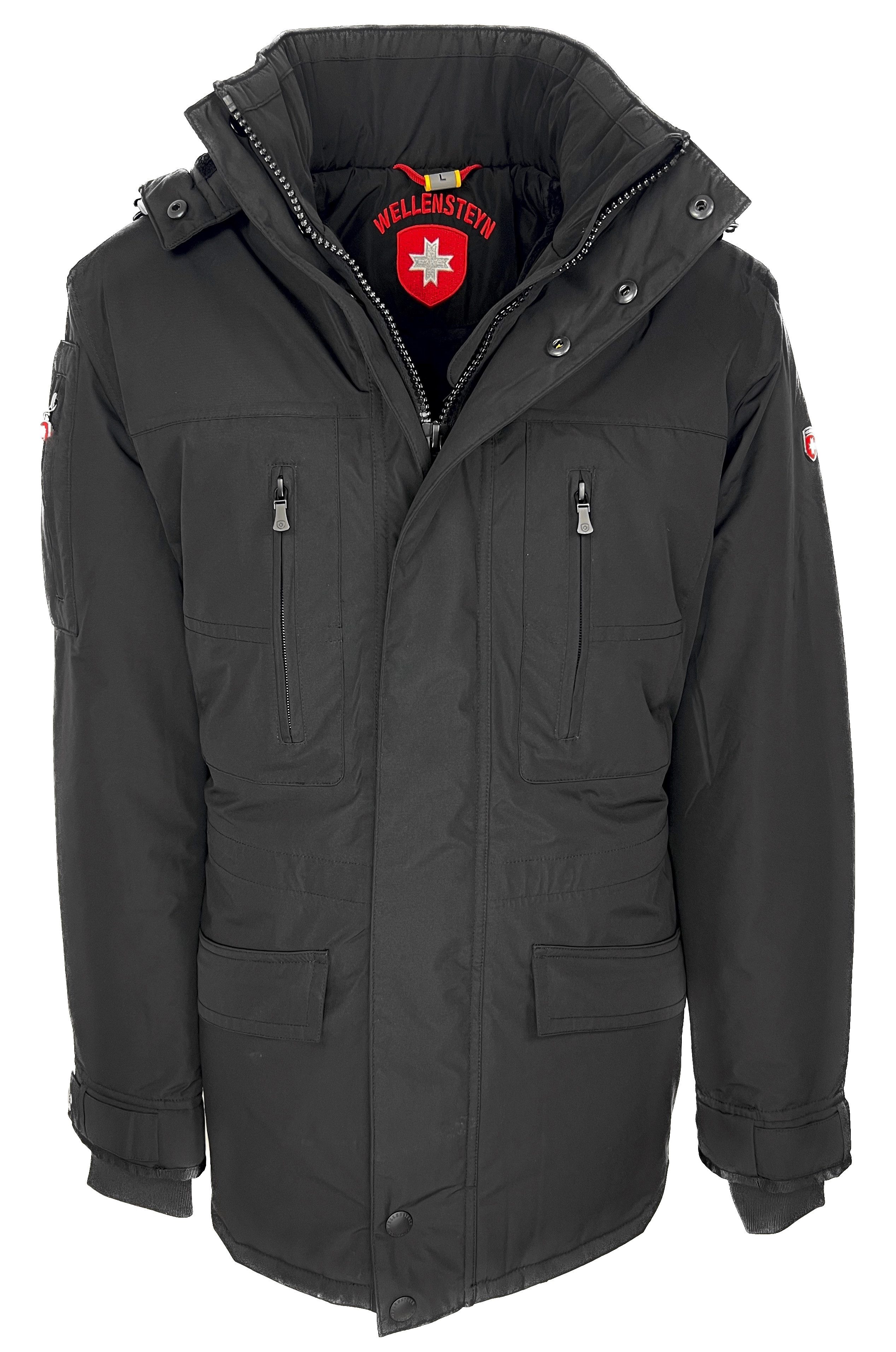 2 Wege Reißverschluss, Aufgesetzte Taschen, Innentasche, Kapuze, Napoleontasche, Taillenweite verstellbar, atmungsaktiv, wasserdicht, winddicht, Ärmelbündchen, Ärmeltasche