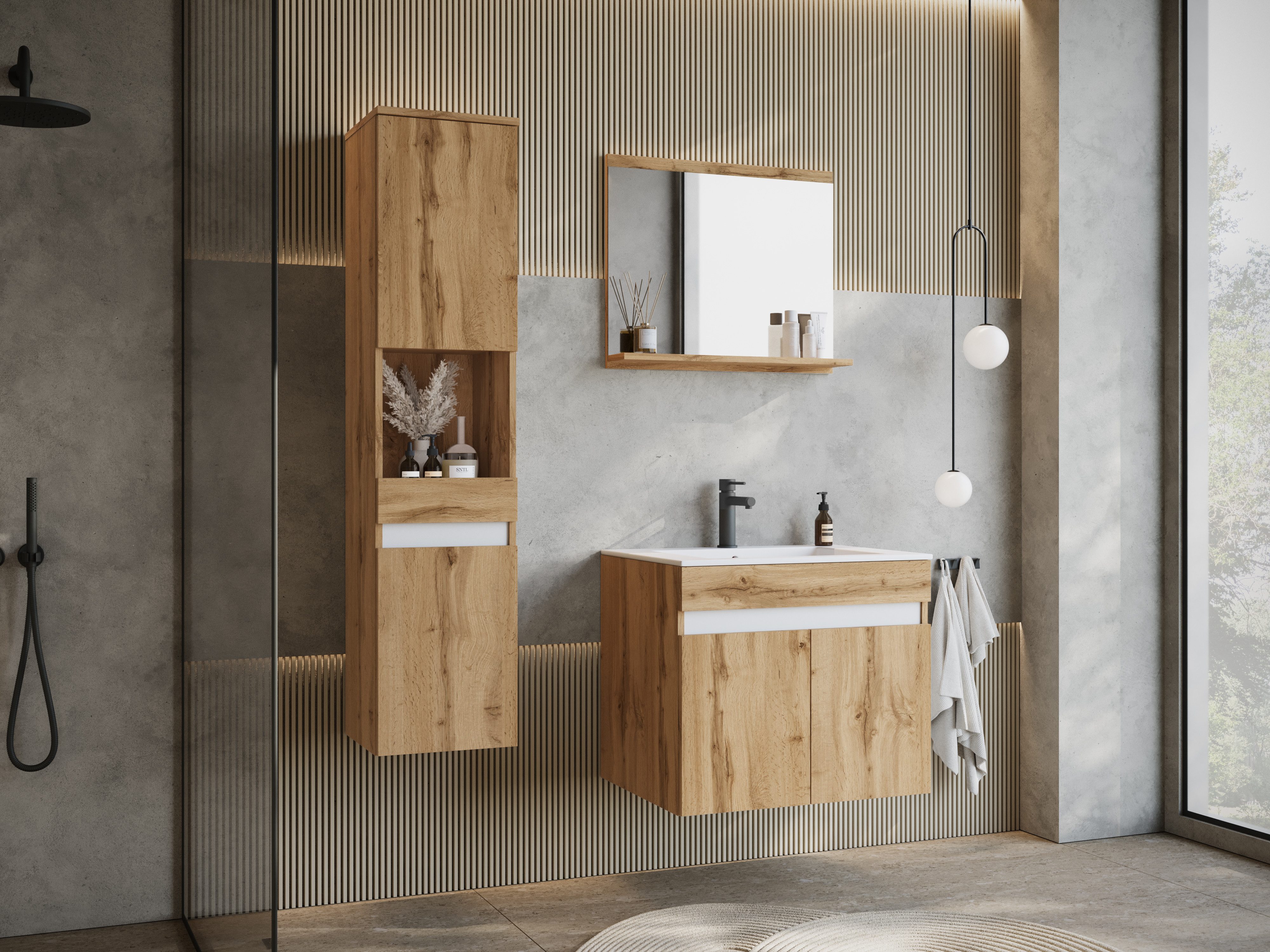 Set beinhaltet | 1 Waschtisch, 1 Hängeschrank, 1 Spiegel mit Ablage |