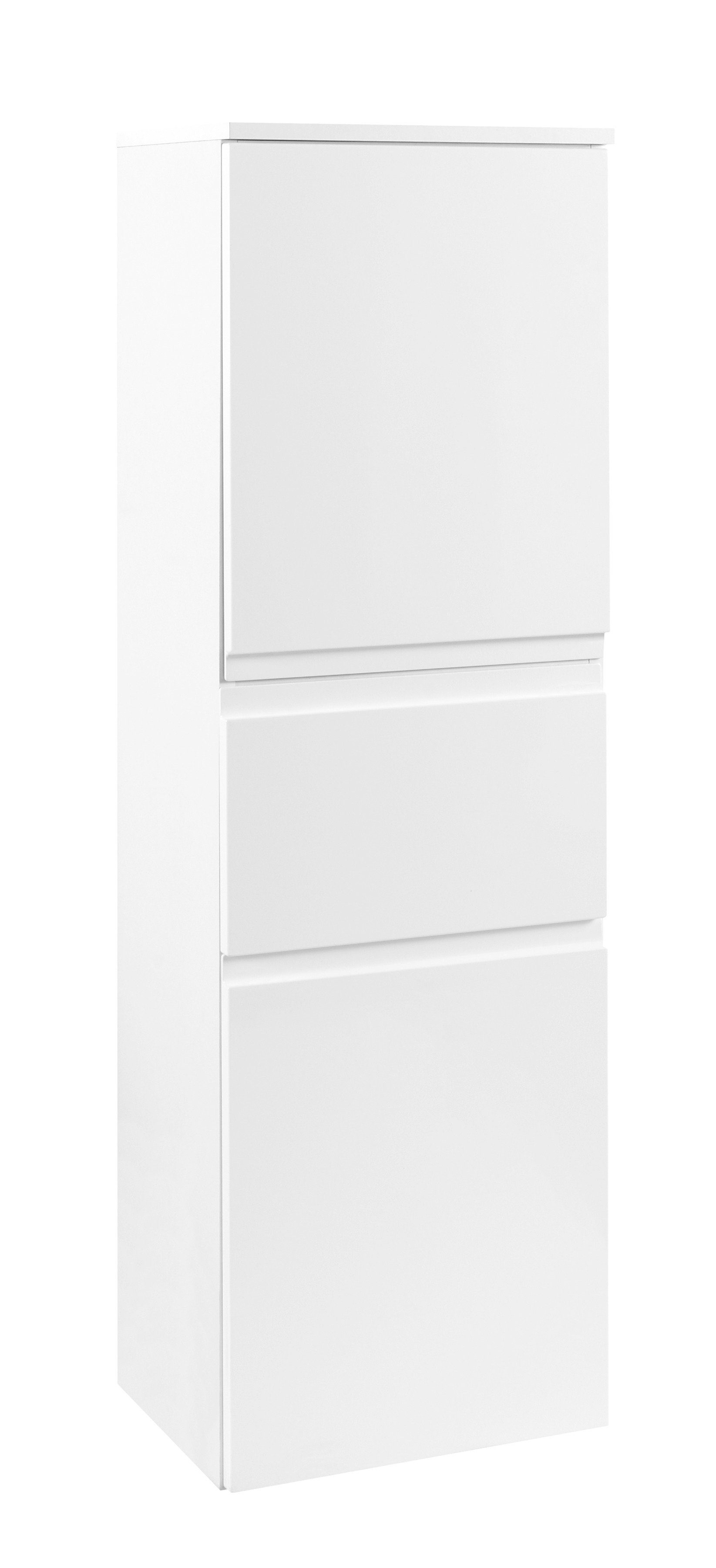 Badmöbel serie »Cardiff«. Klassisch in Design und Dekor. Grifflose Fronten aus MDF. Front in weiß und grau-graphit in Hochglanz und stahlgrau-polareiche in Matt und Korpus jeweils aus melaminharzbeschichteter Spanplatte. Softclose-Funktion für Türen und Auszüge. Auszüge mit Metallzarge. Всі Möbel zur Wandmontage. Zerlegte Badmöbel inklusive Aufbauanleitung. Lieferung ohne Dekoration.