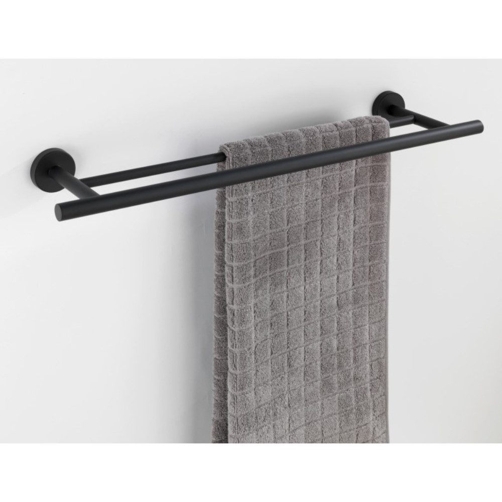 WENKO Badetuchhalter Duo – Eleganz und Funktionalität für Ihr Badezimmer Produktdetails: Funktionalität: Der Badetuchhalter Duo verfügt über zwei parallel laufende, extra lange Aufhängestangen und bietet ausreichend Platz für zwei Badetücher. So können Ihre Handtücher optimal trocknen und sind stets griffbereit. Material: Hergestellt aus rostfreiem, mattiertem Edelstahl, vereint dieser Handtuchhalter Stil und Langlebigkeit. Das trendige, schwarze Loft-Design passt perfekt in moderne Badezimmer. Befestigung: Im Lieferumfang sind Schrauben und Dübel zur Wandmontage enthalten. Alternativ kann der Handtuchhalter auch mit dem Power-Loc® Klebe-Set (separat erhältlich, Art. Nr. 21578100) montiert werden, das eine einfache Installation ohne Bohren ermöglicht. Maße: (B x H x T): 60 cm x 5,5 cm x 14 cm Design und Stil: Die Bad-Serie Bosio Black im Industrial Style bringt einen modernen Akzent in Ihr Badezimmer. Mit ihrem geradlinigen Design schafft sie einen ansprechenden Kontrast zu hellen Küchen und Bädern. Verleihen Sie Ihrem Bad mit der Badetuchstange Duo einen neuen Look und profitieren Sie von der praktischen Funktionalität. Kombinieren Sie den Handtuchhalter mit weiteren Accessoires der Bosio Black Serie für ein harmonisches Gesamtbild.