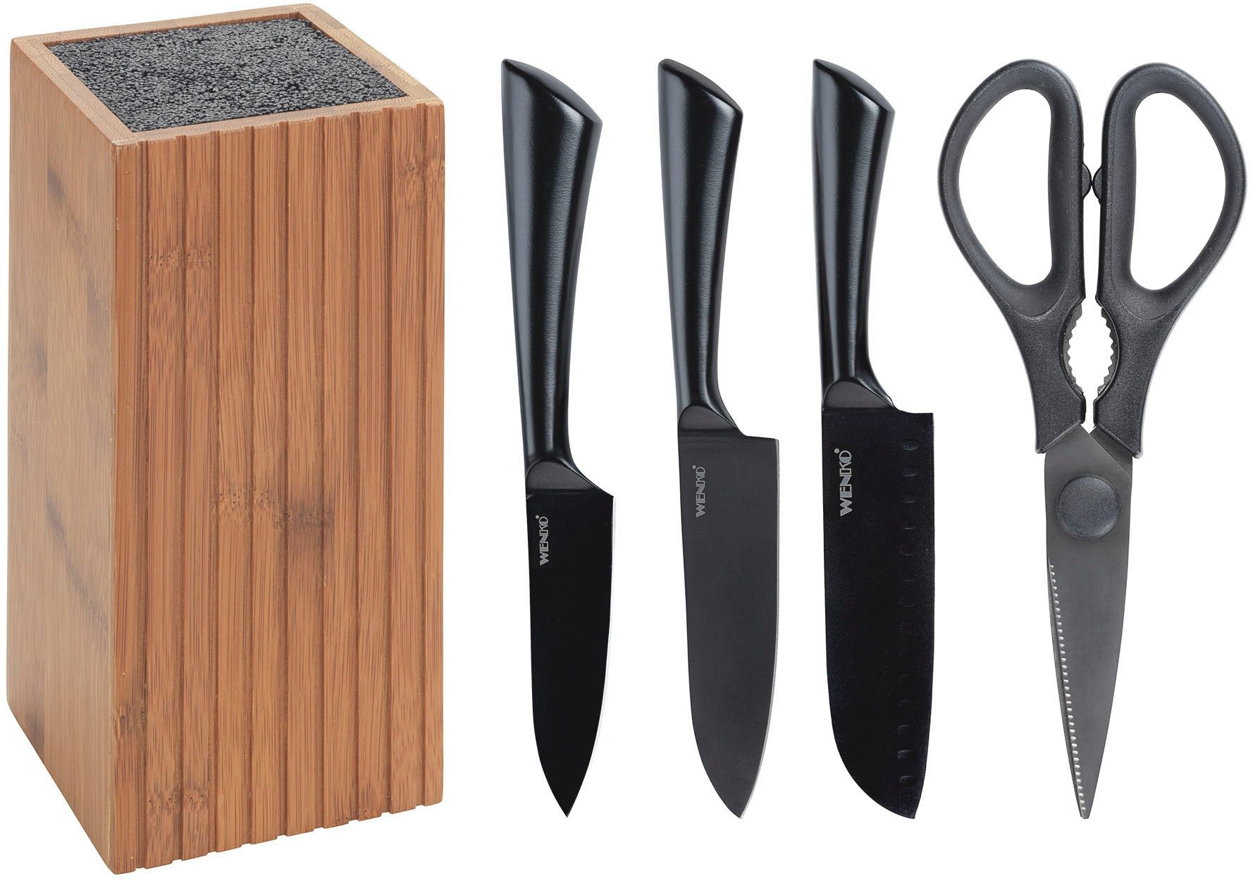 1 x Gemüsemesser 1 x Kochmesser 1 x Küchenschere 1 x Messerblock 1 x Santokumesser
