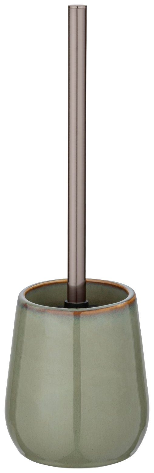 Всіs dreht sich um Grün: Die Badezimmer-Serie Sirmione von WENKO strahlt Vertrauen und die Macht der lebensspendenden Natur aus. Grün wirkt ursprünglich und entspricht dem melancholischen Temperament sowie dem Element Erde. Hinzukommen Highlights in Kupfer, dieser Farbton fängt die Qualitäten von Braun ein und ist daher erdiger, natürlicher und reifer. Sorgen Sie für Ausgleich und bringen Sie eine Prise Balance in Ihren Alltag. Die Accessoires der Reihe Sirmione von WENKO sind aus hochwertiger Keramik hergestellt. Der grüne WC-Bürstenhalter überzeugt mit einem in Kupfer akzentuierten Behälterrand. So fügt er sich hervorragend in Ihr bestehendes Badezimmer-Interieur ein. Für ein harmonisches Rundumbild sorgt der schöne Bürstenstiel in Kupfer, hergestellt aus hochwertigem Kunststoff. Die geschlossene WC-Garnitur wertet dadurch garantiert jedes Badezimmer auf! Die geschmackvolle Stand WC-Garnitur misst Ø 10,5 x 40 cm und lässt sich flexibel im Raum positionieren, auch in kleineren Bädern. Auf diese Weise haben Sie die WC-Bürste stets praktisch zur Hand. Auch im Gäste-WC setzt die Standgarnitur atemberaubende Highlights. Adrett positioniert, bieten Sie auch Ihren Gästen die Möglichkeit, sich an dem eleganten Badaccessoire zu erfreuen. Der robuste Bürstenkopf hat einen Durchmesser von Ø 8,5 cm und ist auswechselbar. Die widerstandsfähigen Borsten aus Kunststoff ermöglichen eine hygienisch, gründliche Reinigung. Zudem zeichnet sich dieses Material durch seine Langlebigkeit aus.