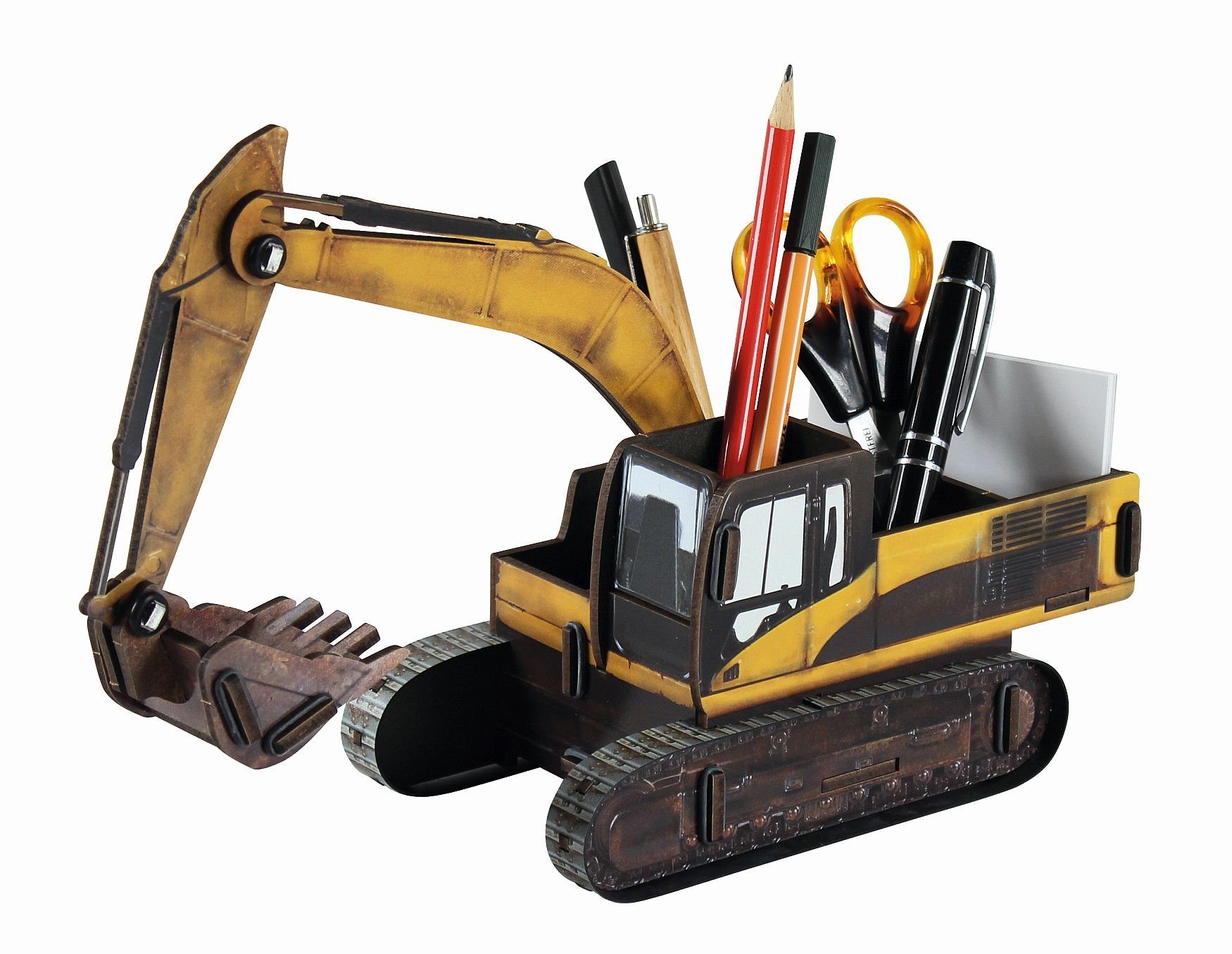 Der Bagger bietet reichlich Platz für die Stifte, Zettel, Visitenkarten und weitere Büroaccessoires.