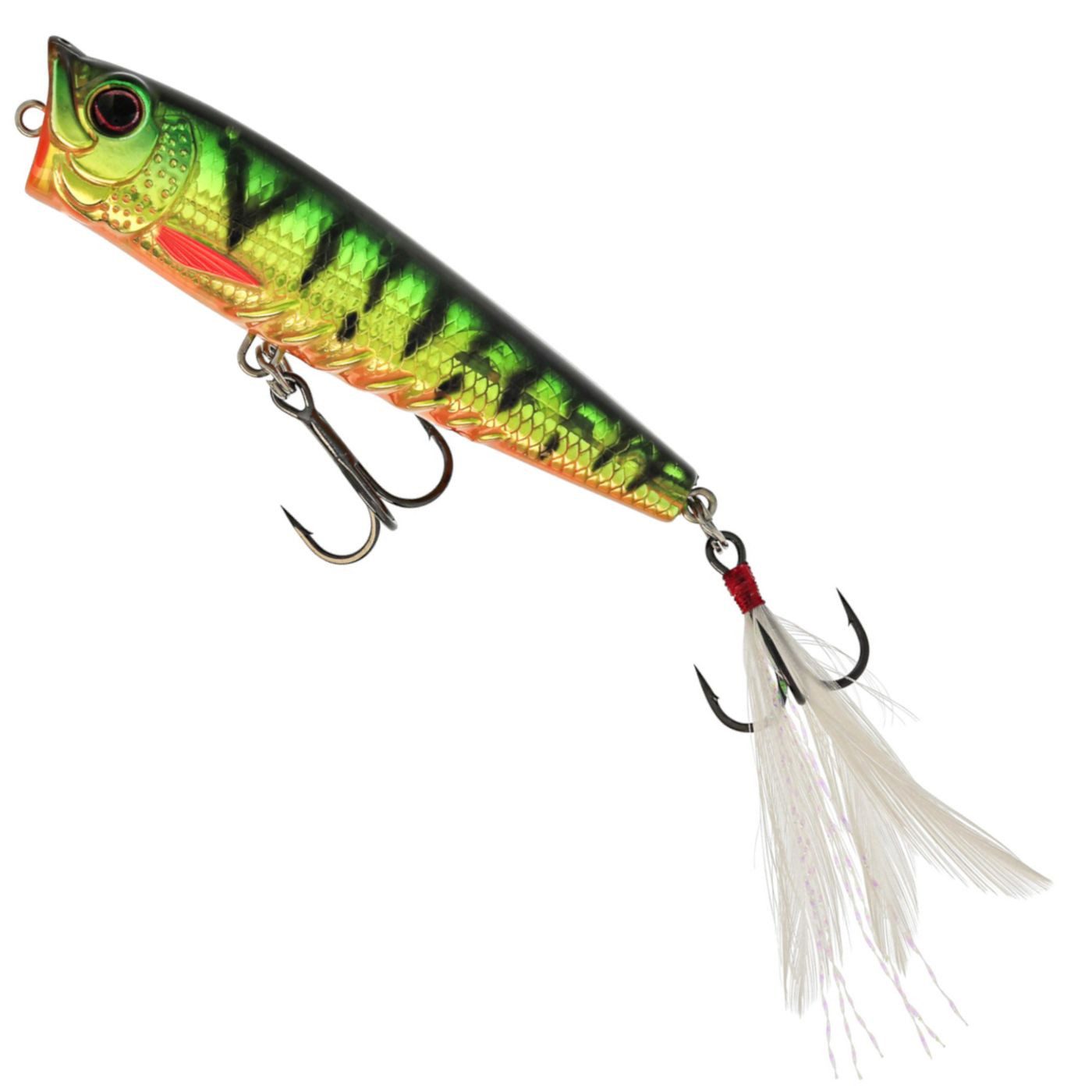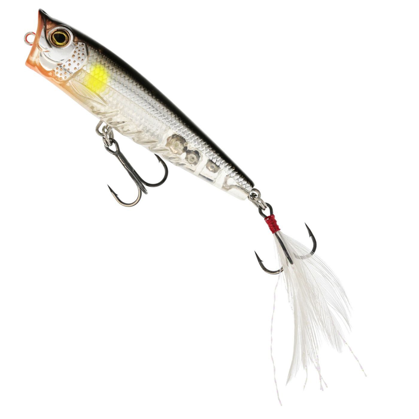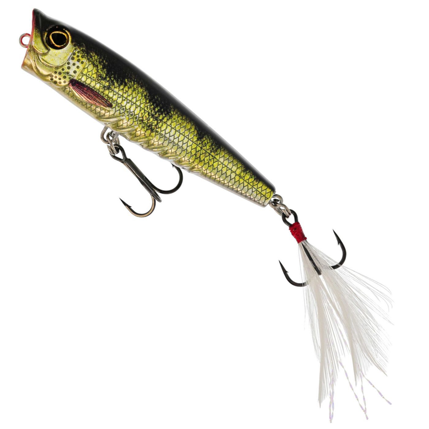 Westin Spot-On Popper 6,5cm 7g Floating - Das Angeln mit Ködern auf der Wasseroberfläche („Topwater“) ist wohl eine der aufregendsten Arten, Fische zu fangen, und der Spot-On Popper ist vollgepackt mit kleinen Details, die ihn zu einem der besten Köder seiner Klasse machen. Der naturgetreue Fischkörper und die realistischen Augen machen ihn auf den ersten Blick zu einem schön gestalteten Oberflächenwobbler. Die verlängerte Drahtöse erleichtert das Wechseln des Köders, ganz gleich, ob du ihn direkt anbindest oder einen Snap verwendest. Die Körperform wurde für präzise, lange Würfe entwickelt und ist sehr einfach zu fischen. Fische den Spot-On Popper mit engen Schlägen/Jerks aus dem Handgelenk oder mit längeren „Zügen“, um den magischen Plopp-Sound zu erzeugen. Verwende den Spot-On Popper über Grasflächen, in Ufernähe, an flachen Stellen oder in tieferen Bereichen, um explosive Bisse von aggressiven Räubern auszulösen. Der Spot-On Popper sitzt mit dem Schwanz nach unten, was in Kombination mit dem getarnten, federumhüllten Haken eine hohe Hakquote ergibt!