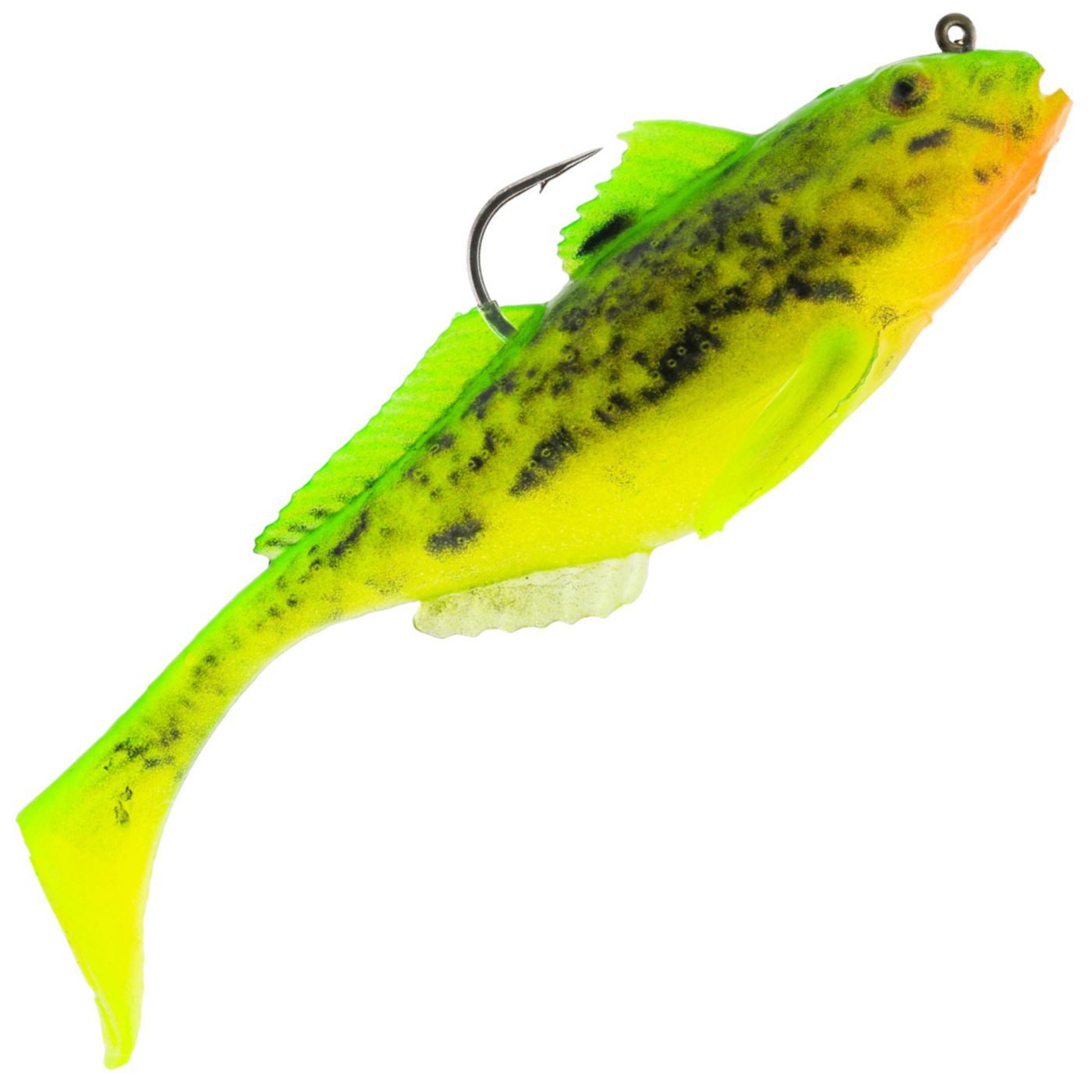 Westin Gunnar the Goby R2F - Gunnar the Goby R2F ist ein sofort einsatzbereiter Gummifisch von Westin, der speziell für das Raubfischangeln auf Zander und Barsch konzipiert wurde. Die geriggte Version dieses Köders basiert auf einem hyperrealistischen Grundel-Design, das sich an einem der häufigsten Beutefische in europäischen Binnengewässern orientiert. Mit seinem kompakten, kräftigen Körper und der natürlichen Farbgebung eignet sich dieser Swimbait besonders für Präsentationen in Grundnähe. Das Modell ist mit einem bleifreien Stand-Up-Geschirr ausgestattet, das eine aufrechte Position des Köders nach dem Aufsetzen auf dem Gewässergrund ermöglicht. Die Spitze des integrierten, besonders scharfen Hakens liegt dabei unter der Rückenflosse und ist somit vor Kraut und Hindernissen geschützt. Dies erlaubt auch in strukturreichen Gewässerbereichen eine weitgehend hängerfreie Führung.Der schnell arbeitende Hammerschwanz setzt den Körper bei jeder Bewegung in eine lebhafte Wackelaktion, die sowohl Druckwellen als auch visuelle Reize erzeugt. Durch das realitätsnahe Schwimmverhalten, das zwischen Steinen und Bodenstrukturen hindurch gleitet und auf den flexiblen Brustflossen aufsetzt, ahmt der Köder sehr genau das Verhalten einer echten Grundel nach. Gunnar the Goby R2F ist für langsames Jiggen mit kurzen, kräftigen Bewegungen konzipiert und spricht gezielt raubende Fische an, die sich auf Grundeln als Beute spezialisiert haben. Der fotorealistische Druck in Kombination mit handgemalten Details verleiht dem Köder ein authentisches Erscheinungsbild, das sich bei unterschiedlichen Lichtverhältnissen bewährt. Die Kombination aus realistischer Aktion, praktischer Montage und robuster Konstruktion macht diesen Gummifisch zu einer vielseitigen Wahl für verschiedene Gewässertypen.