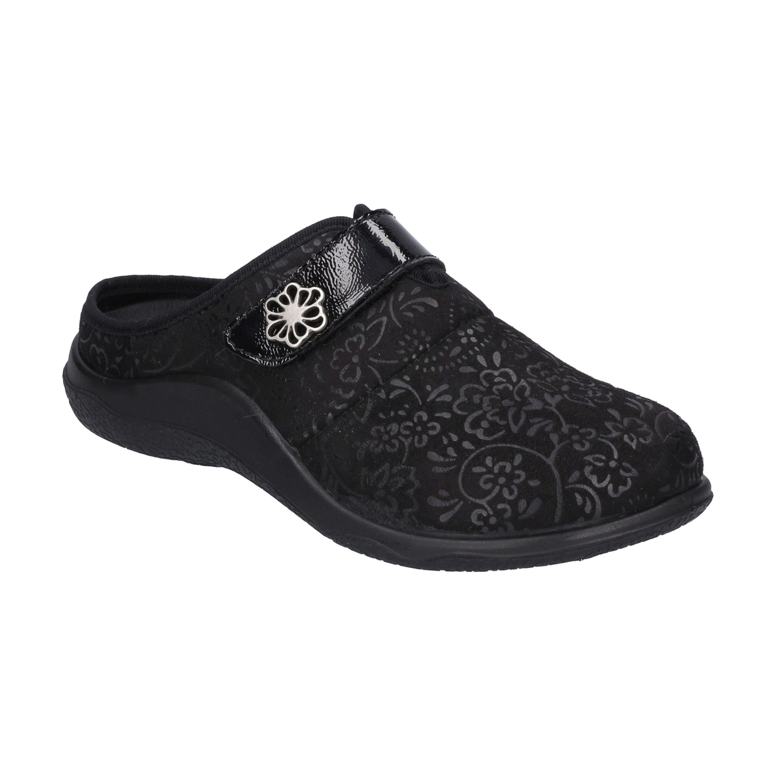 Mit dem Roubaix 01 präsentiert Westland einen Hausschuh, der in keinem Damenschuhregal fehlen sollte. Gefertigt aus einer edlen Kombination von Lack-Rindsleder und Textil, bietet dieser Schuh nicht nur eine ansprechende Optik in klassischem Schwarz, sondern auch eine Haptik, die zum Wohlfühlen einlädt. Besonders hervorzuheben ist die PU-Sohle, die durch ihre Dämpfeigenschaften jeden Schritt sanft abfedert und dabei extrem leicht bleibt. Dank der herausnehmbaren Arnedry-Mikrofaser-Innensohle ist auch die individuelle Anpassung an orthopädische Fußbetten möglich, was den Tragekomfort zusätzlich erhöht. Die Strobel-Machart, eine traditionelle Застосуватиungsweise, garantiert Langlebigkeit und eine perfekte Verbindung von Schaft und Sohle, während das florale Muster des Obermaterials dem Schuh eine gemütliche und einladende Note verleiht. Ideal für die Freizeit zu Hause im Herbst, unterstreicht der Roubaix 01 die Philosophie der Slow Fashion durch hochwertige Materialien und sorgfältige Verarbeitung. Der Klettverschluss rundet das Design ab und ermöglicht ein einfaches An- und Ausziehen. Ein Schuh, der Komfort, Qualität und Еко-товари vereint.