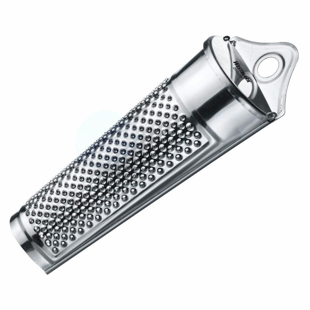 Mit unserer Muskatreibe verfeinern Sie Ihre Speisen im Nu. Egal, ob Gemüsegratins, Hackgerichte, Suppen, Eintöpfe oder auch Kartoffelpüree - eine Prise Muskat verleiht den Gerichten das gewisse Etwas. Die scharfe Edelstahl-Reibefläche ermöglicht einmüheloses Reiben und im integrierten Behälter lassen sich ganze Muskatnüsse aufbewahren - platzsparend und hygienisch.