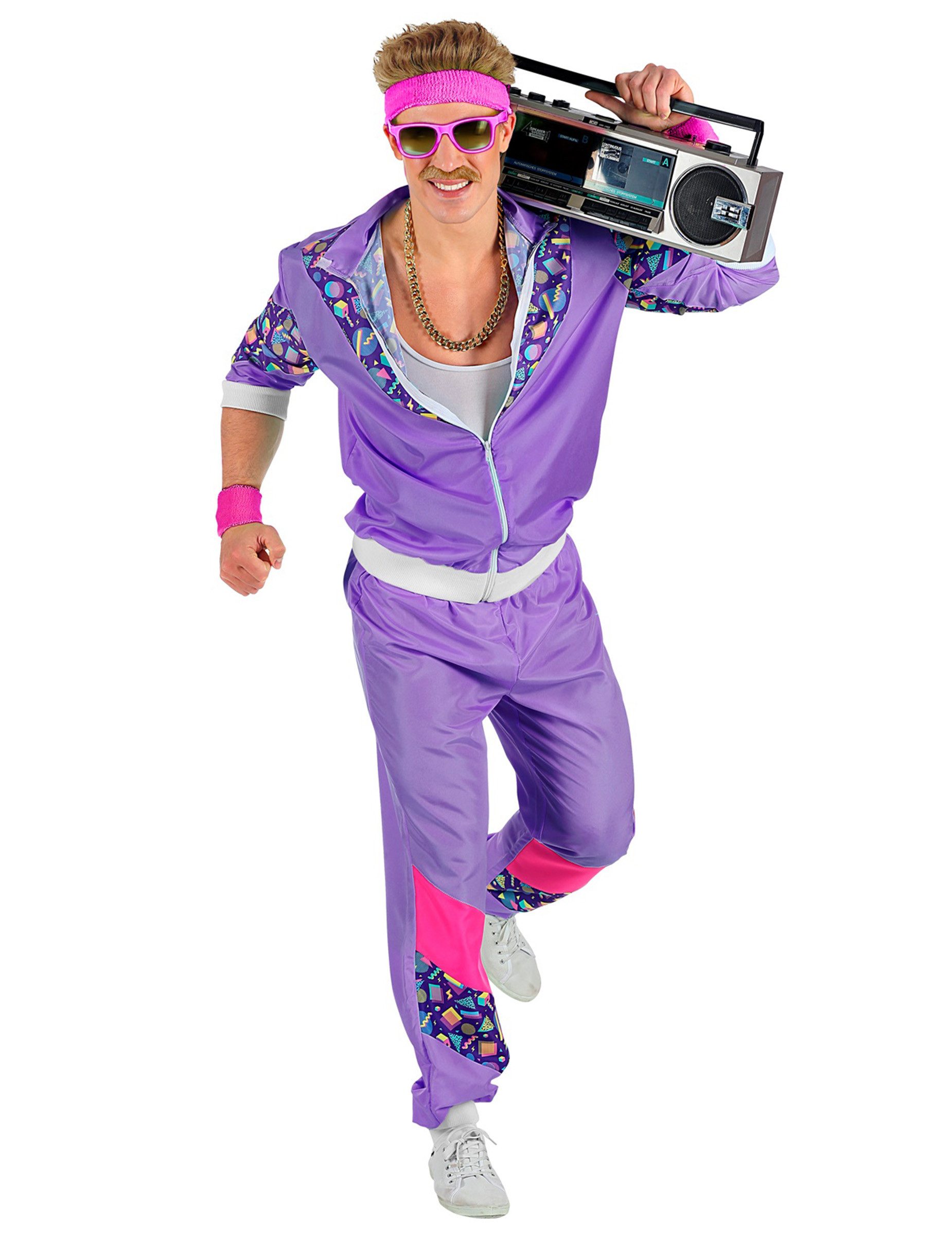 Dieses Bad Taste-Herrenkostüm in Übergröße besteht aus einer Jacke und einer Hose. Das Stirnband, die Brille, der Bart, das Radio, die Schweißbänder sowie die Schuhe sind nicht im Lieferumfang enthalten. Das violette und total trashige Oberteil stellt eine 80er-Jahre Jacke mit Reißverschluss dar, welche mit typischen achtziger Jahre Mustern verschlimm-schönert wurde. Dazu passend kommt das coole 80er-Kostüm für Herren mit einer lilafarbenen Jogginghose mit demselben bunten Muster sowie pinken Leuchtstreifen auf den Waden. Das 80s-Kostüm in Übergröße ist ein echter Farbtupfer auf jeder angesagten Bad Taste-Mottoparty, an Silvester und natürlch an Karneval!