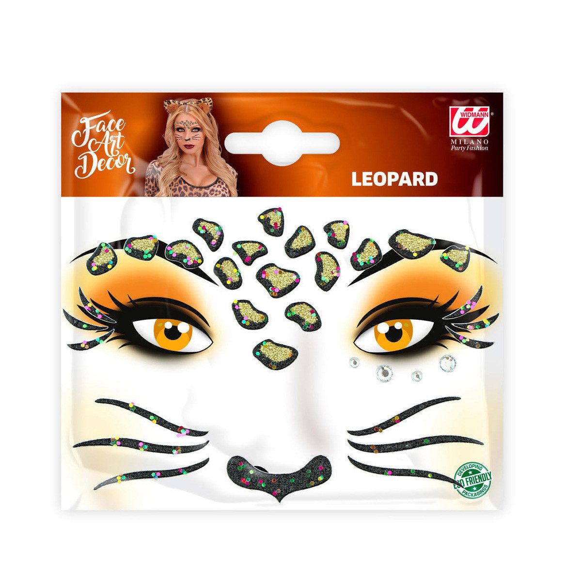 Widmann S.r.l. Schmuck-Tattoo Face Art Decor Glitzer Tattoo Sticker - Leopard