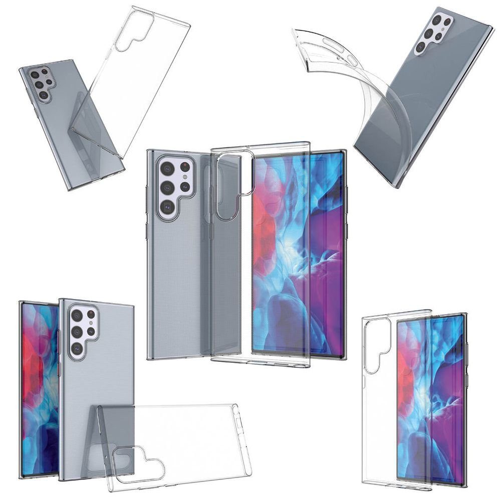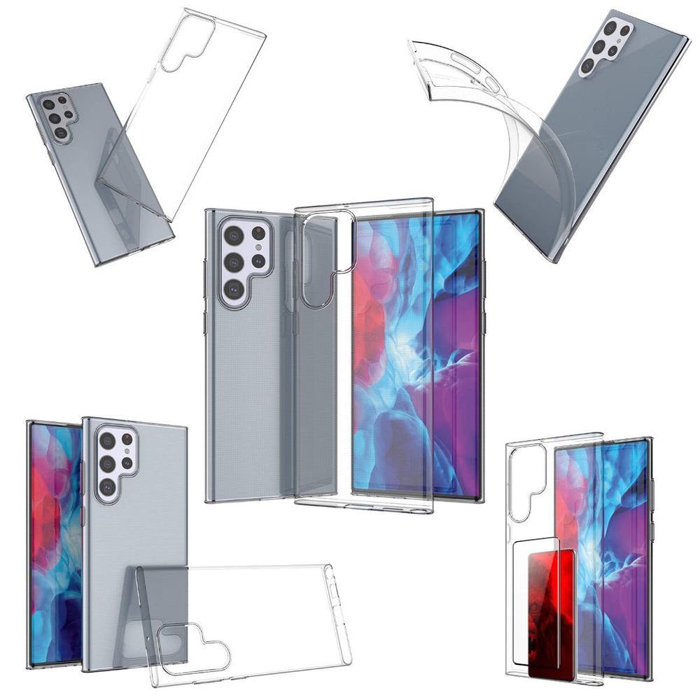 AUSWAHL Hochwertiges 0,3 mm ultra dünn TPU Silikoncase für Samsung Galaxy S22 Ultra und oder Hartglas Folie (0,26 mm extrem dünn, H9 extreme Härte)