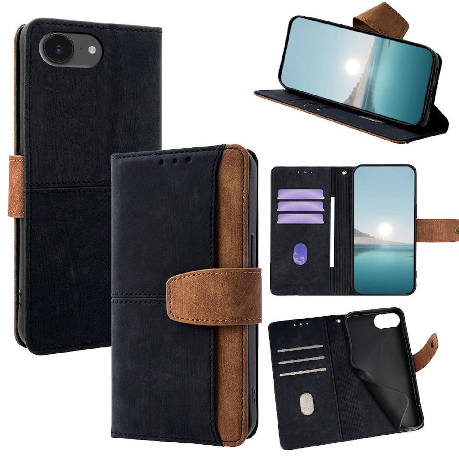 Diese elegante Klapphülle wurde speziell für das iPhone 16e entworfen und bietet dir praktische Funktionen in einem stilvollen, zweifarbigen Design.