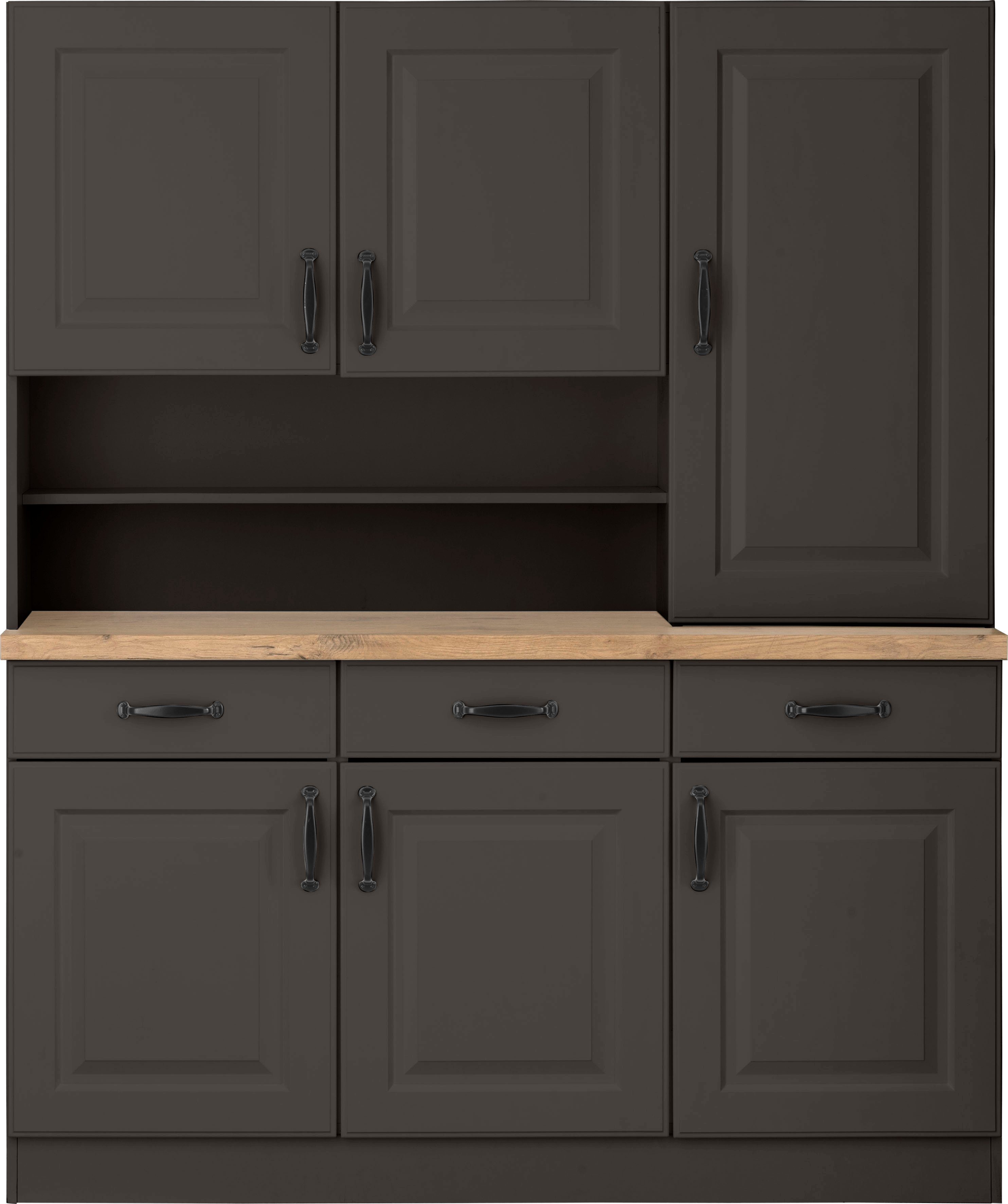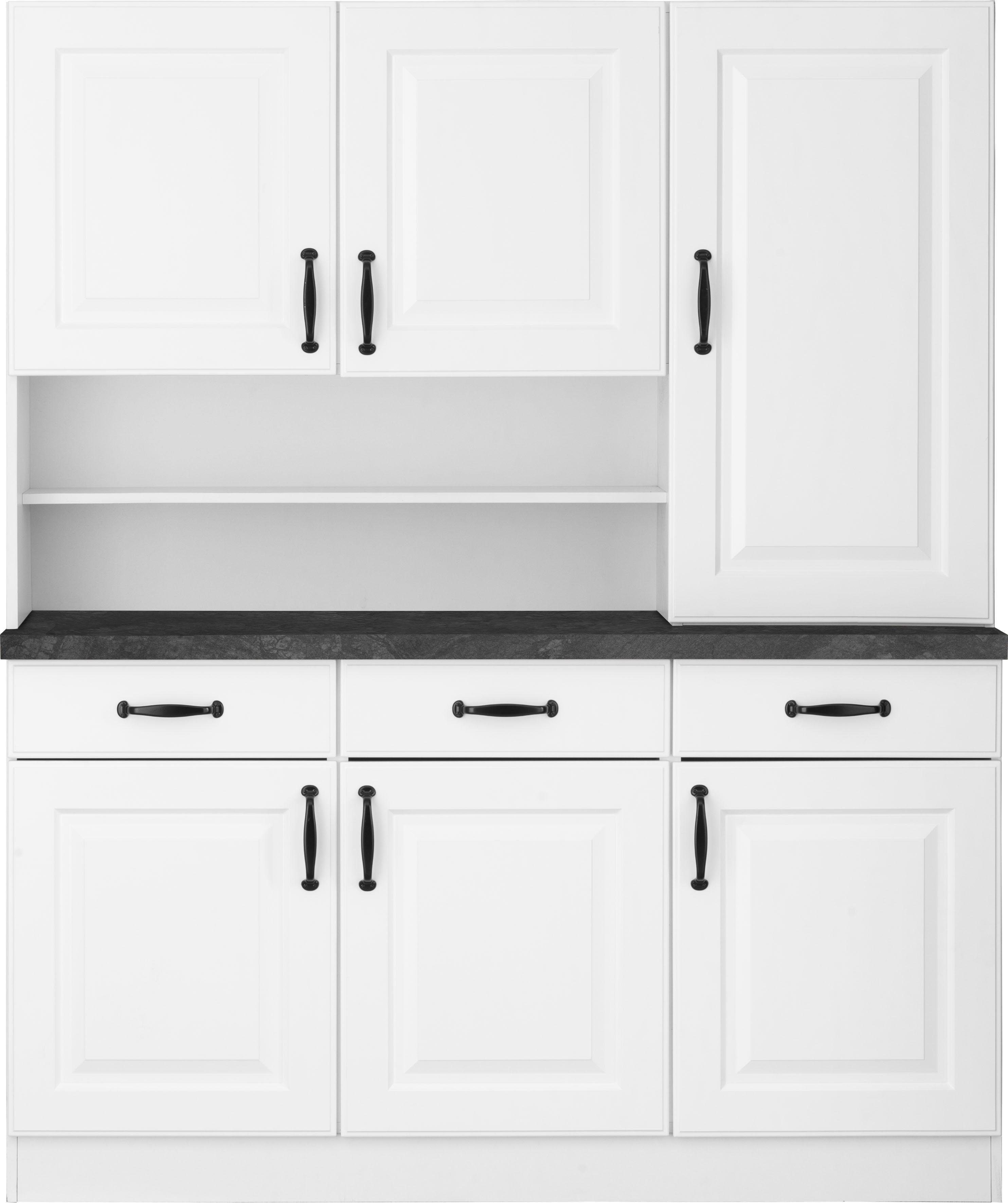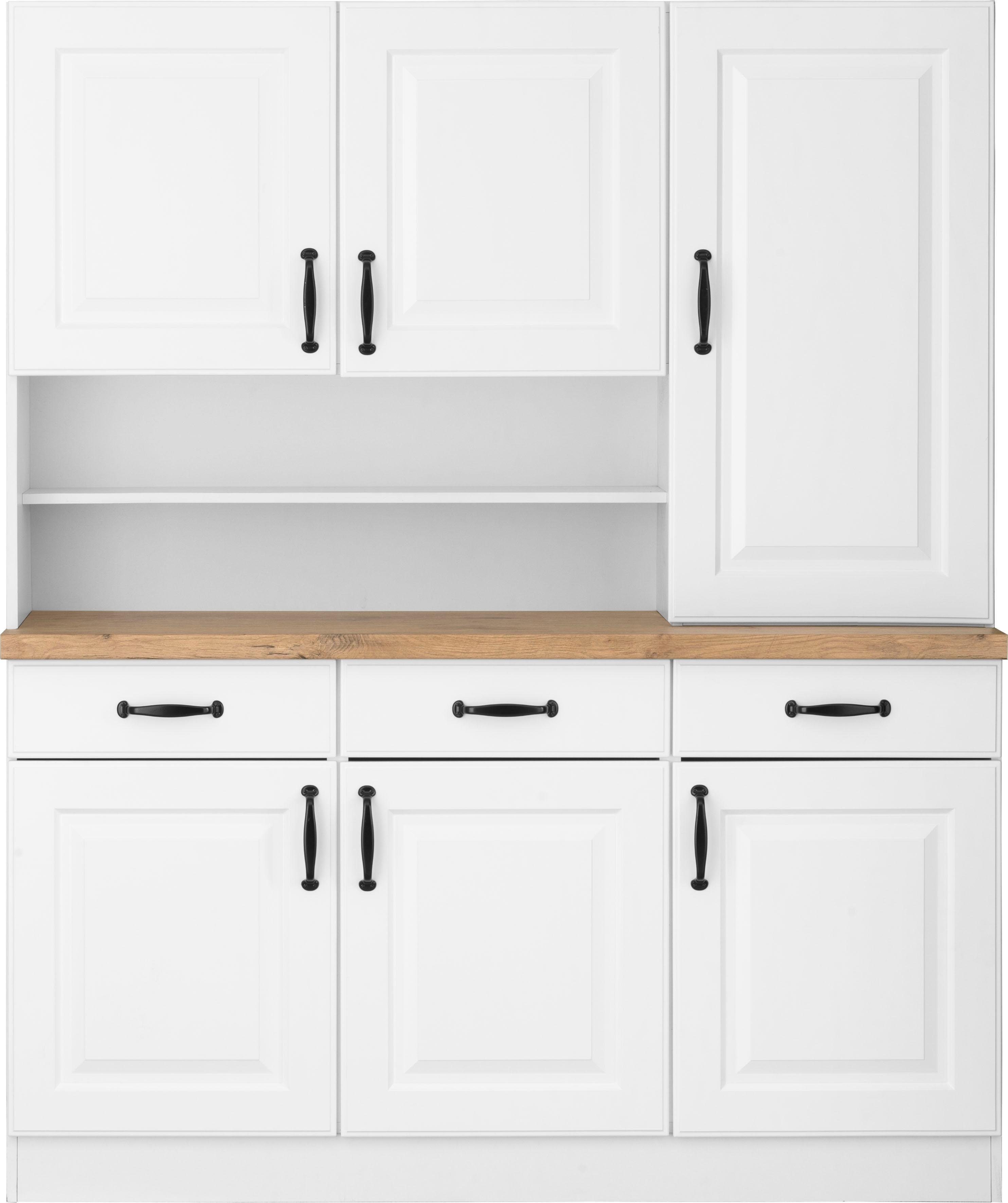 Farbe | Front: Kassette weiß, Korpus: weiß, Arbeitsplatte: Kastelleiche |