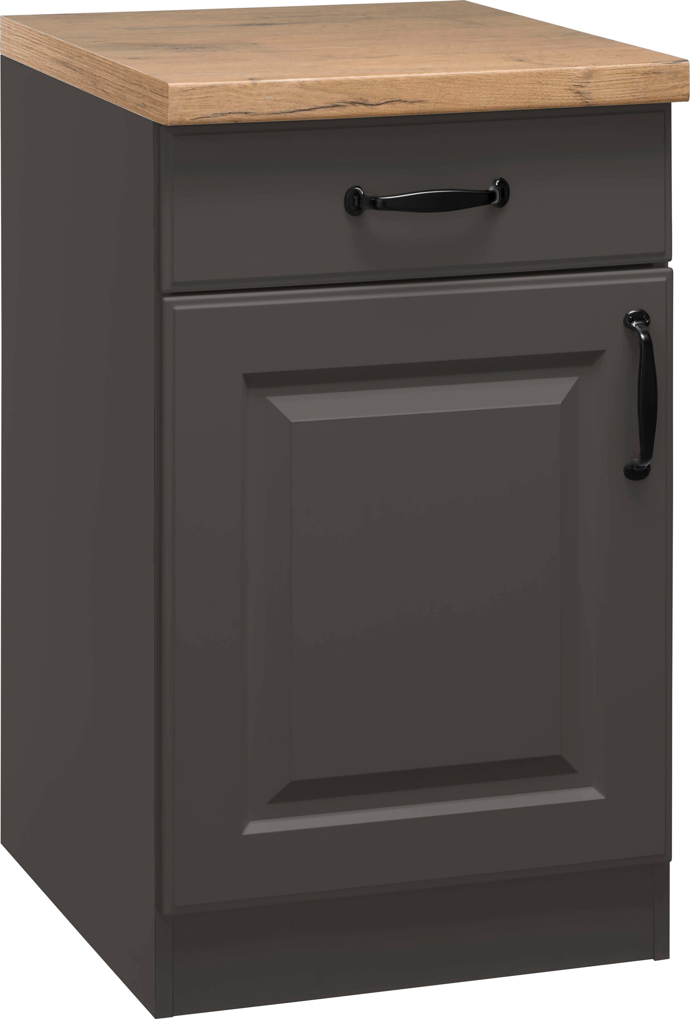 Farbe | Front: Kassette weiß, Korpus: weiß, Arbeitsplatte: Kastelleiche |