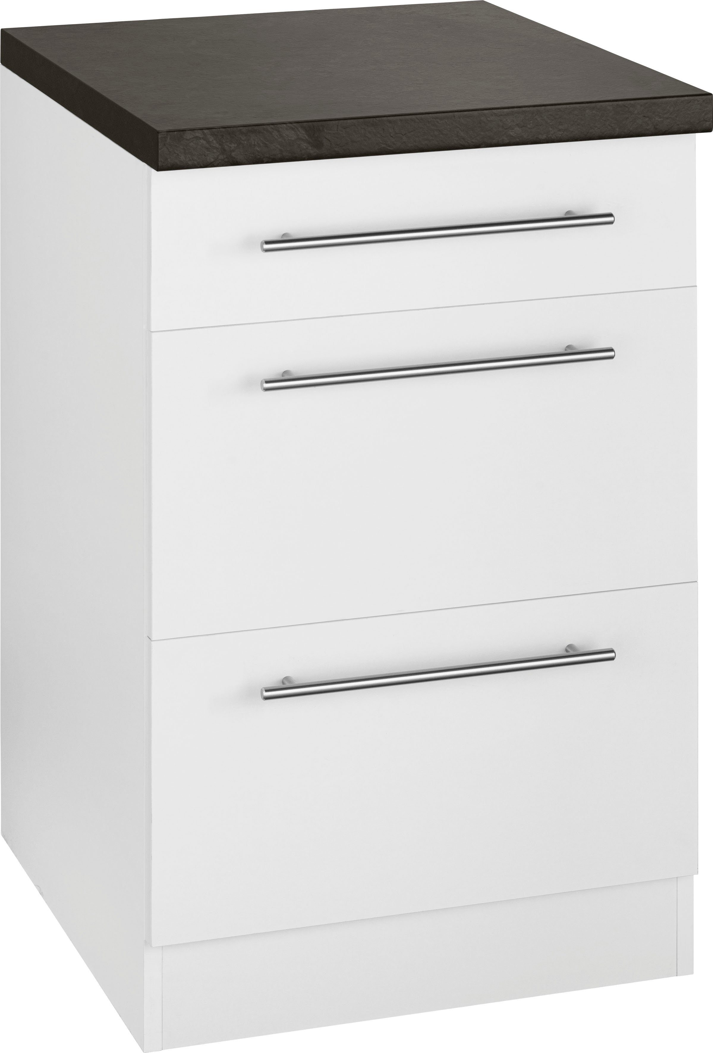 Farbe | Front und Korpus: weiß, Arbeitsplatte: Granit Schwarz |
