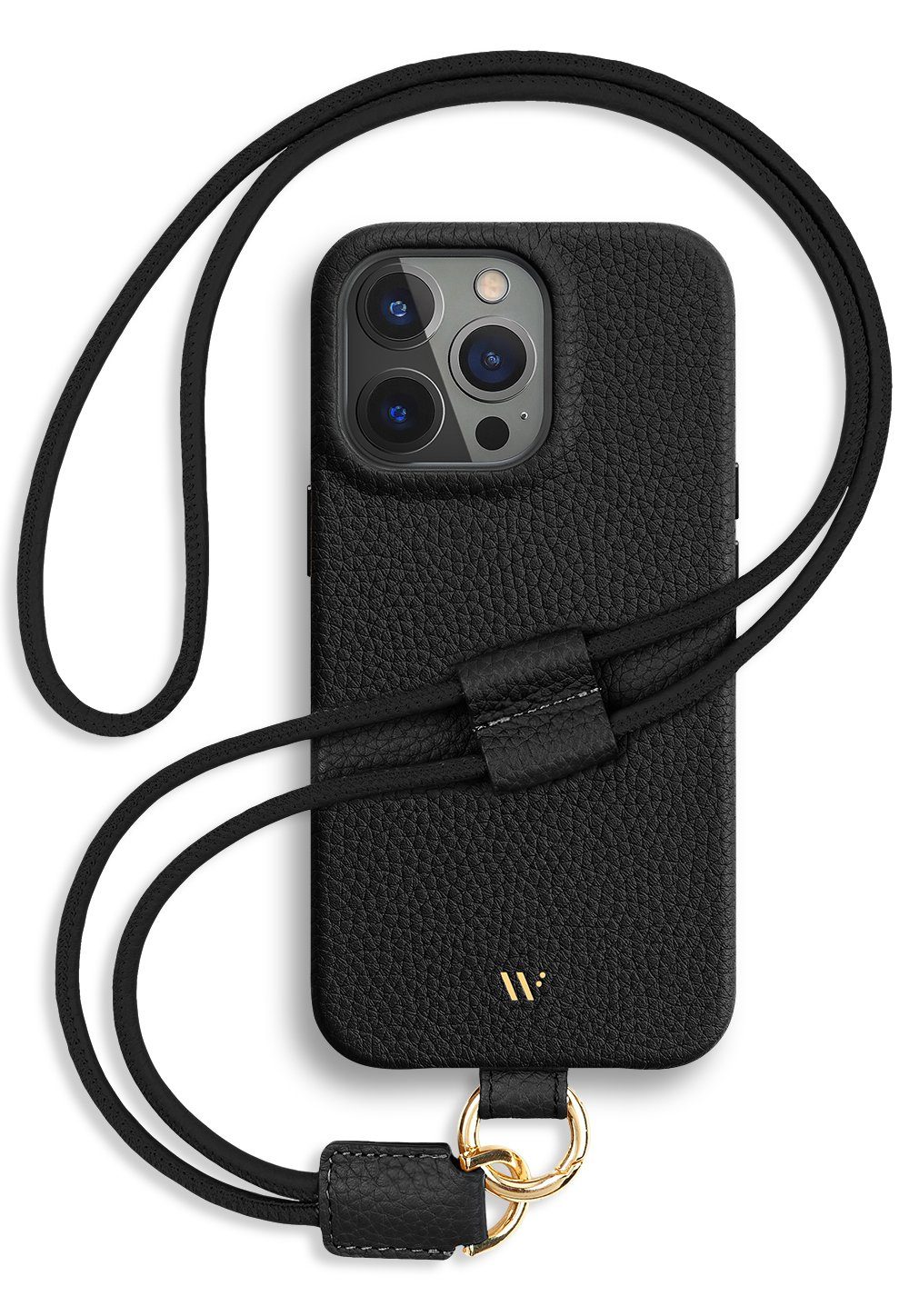 Ausstattung | Leder aus Deutschland, Abnehmbares Band, Kompatibel mit MagSafe und Qi, Erhöhter Kameraausschnitt & Seitenränder, Weiches Mikrofaser auf der Innenseite, Hochwertige plastikfreie Verpackung, Schlankes Design |