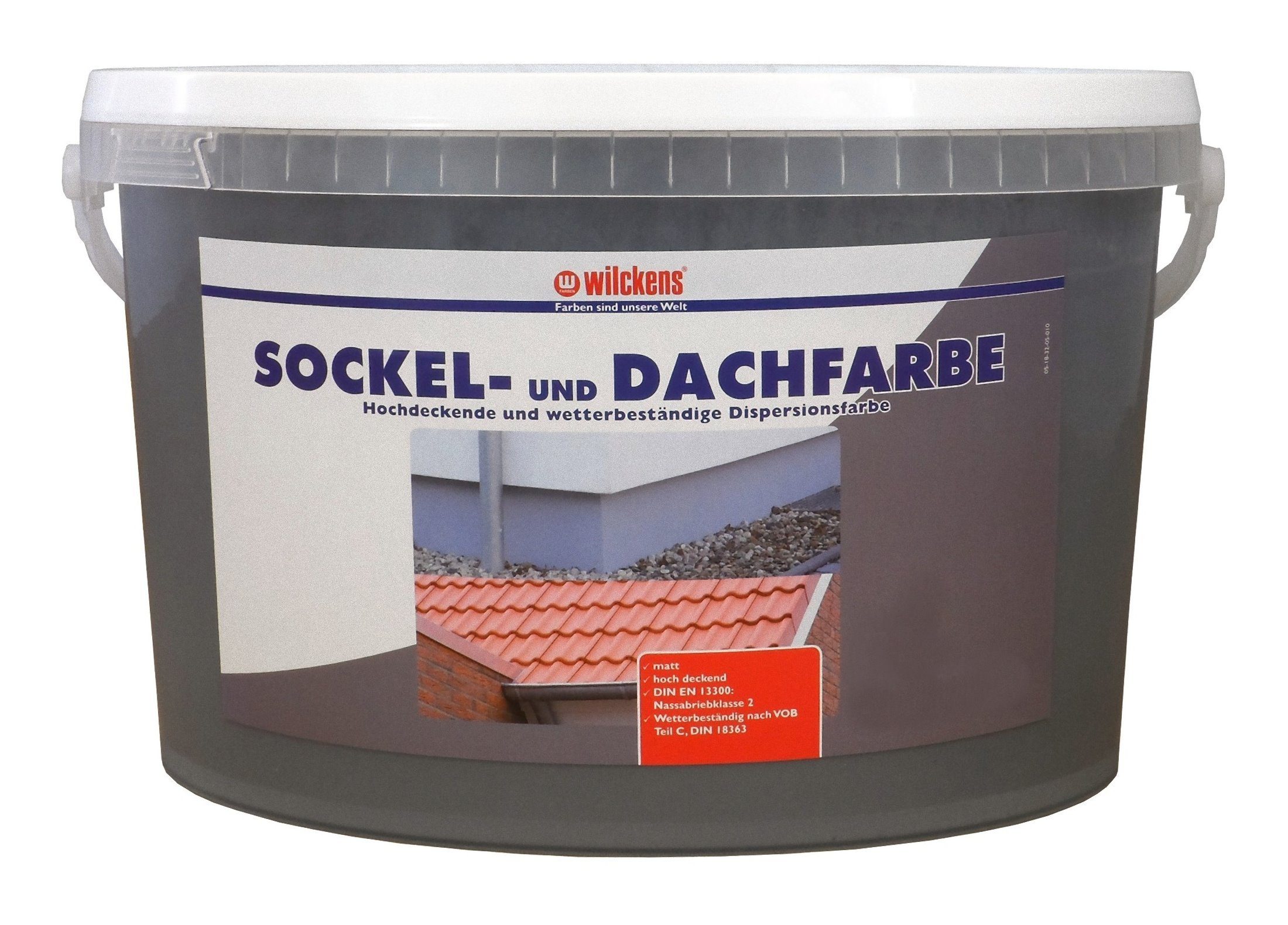 Wilckens Sockel- und Dachfarbe schützt Wand- und Sockelflächen viele Jahre gegen Wind und Wetter .Hervorragend geeignet für Neu- und Renovierungsanstriche im Schlagregenbereich von Fassadensockeln sowie für Dachziegel und Faserzementplatten.