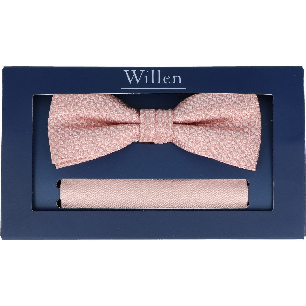 Dieses Set der Marke Willen besteht jeweils aus einer Schleife und dem passenden Einstecktuch. Dies bildet eine perfekt abgestimmte Kombination der beiden Herren Accessoires und rundet jedes Outfit ab. Das Set eignet sich besonders für ein stilbewusstes und modisches Auftreten. Es kann sowohl im Business-Alltag als auch zu Feierlichkeiten jeder Art getragen werden. Die breite Farbpalette ist zudem an die aktuellen Farben der Cocktailkleider der Damen angepasst und bietet für jeden Geschmack das Richtige. Der Stoff setzt sich zusammen aus 100% Seide im Schuss und Mikrofaser in der Kette. Die Schleife verfügt über eine feine Gitter-Struktur, während das Einstecktuch eine glatte Oberfläche aufweist. Mit diesem Set erhalten Sie eine starke Kombination der beliebtesten Herren Accessoires inklusive Verpackung bequem nach Hause geschickt.