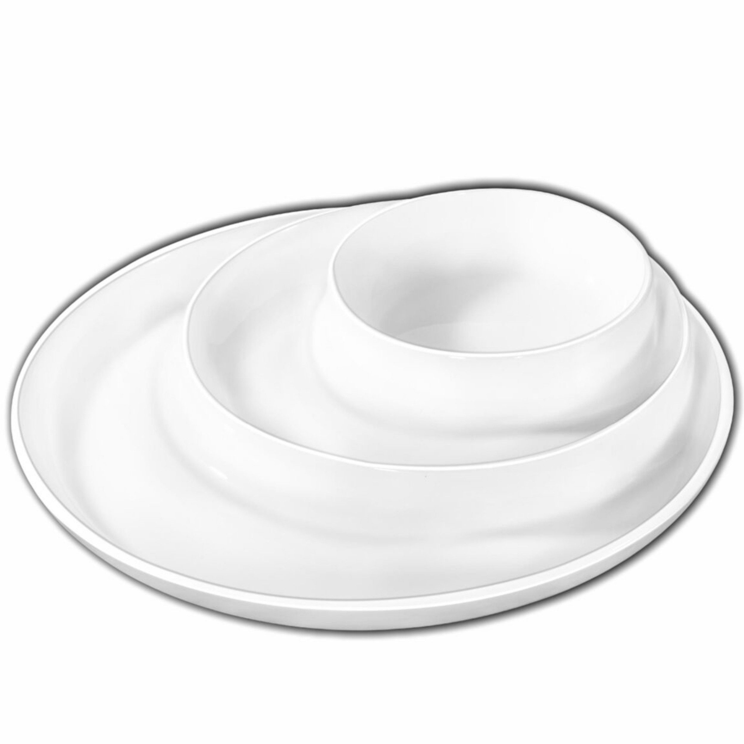 Elegantes Design: Diese Schalen aus der Wilmax Kollektion haben eine stilvolle, unterteilte Form, die jedem Tisch ein besonderes Flair verleiht. Traditionelle Formen und Muster in klassischem weißem Porzellan.