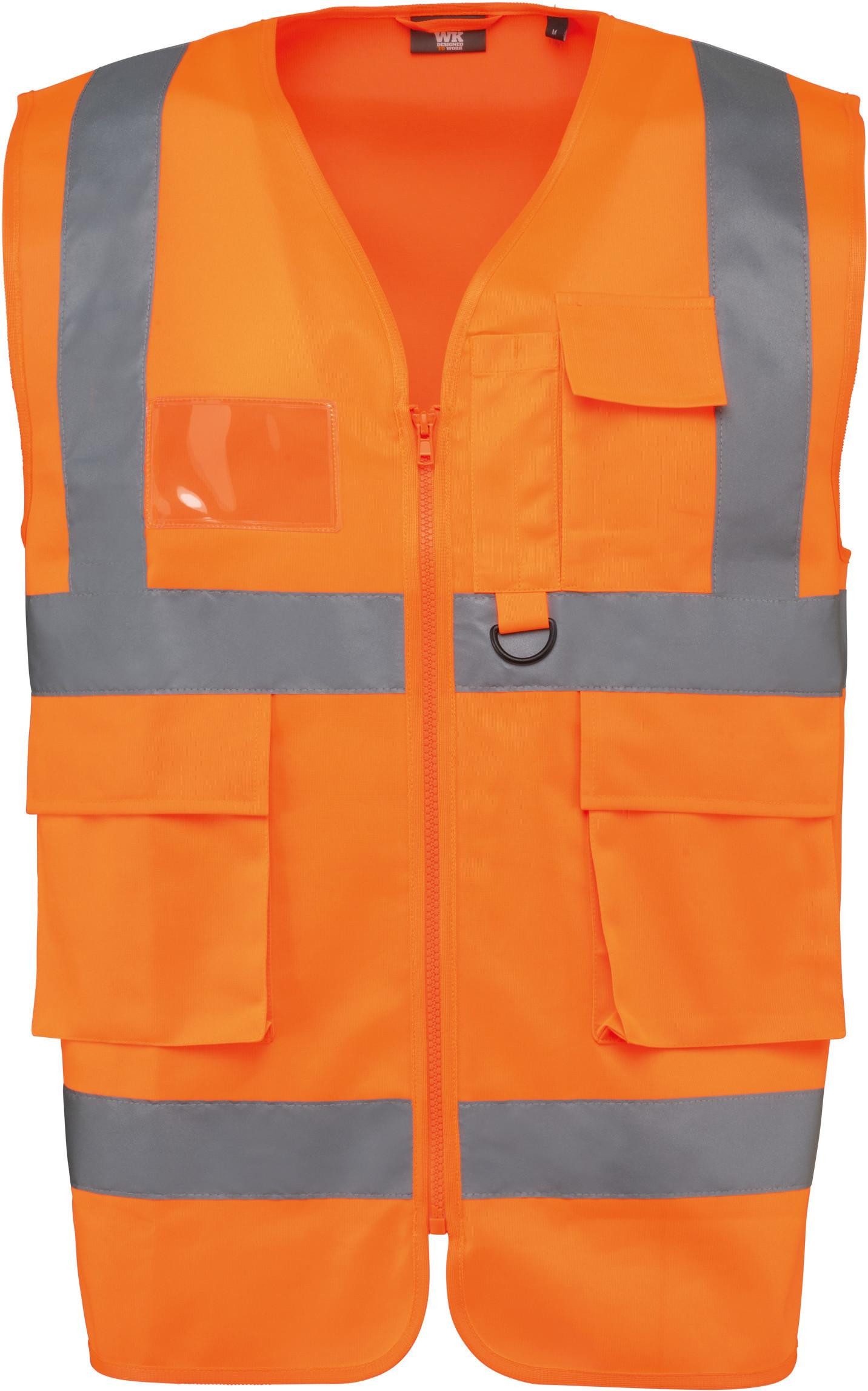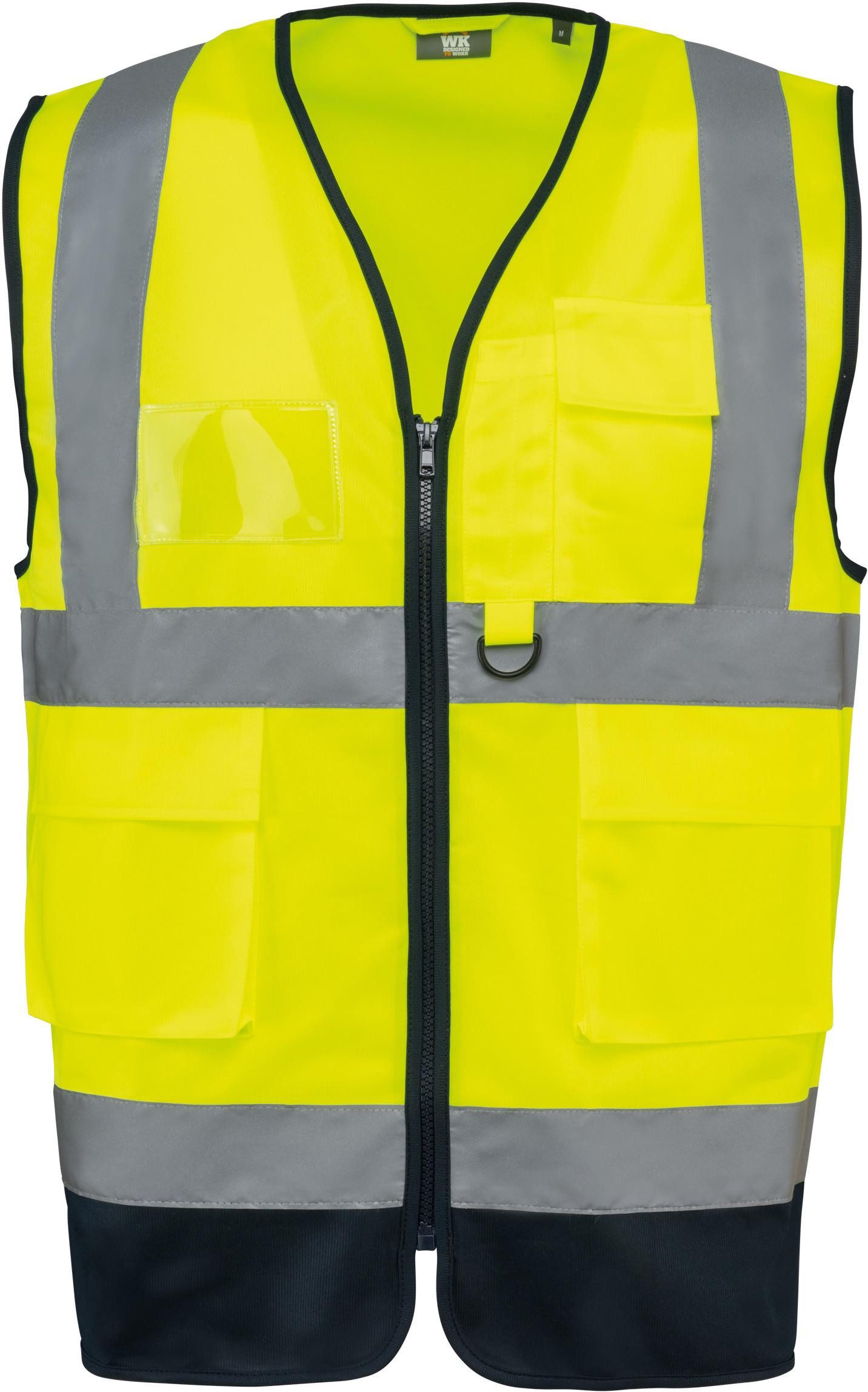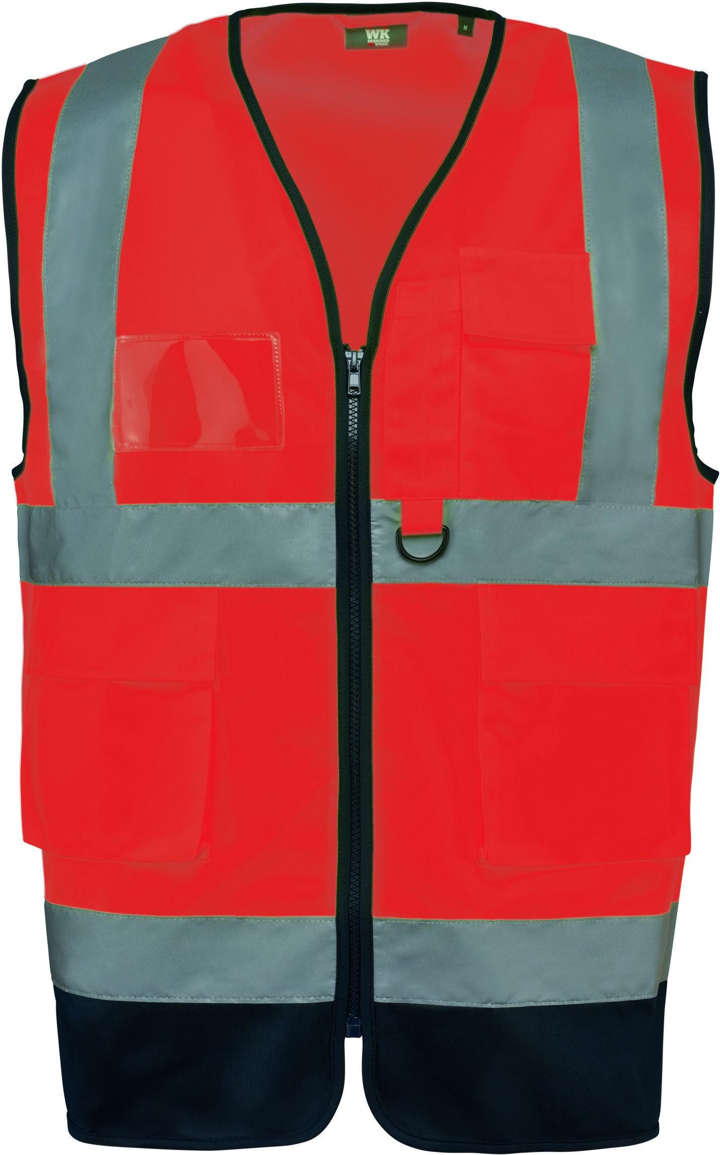 100 % recycelter Polyester. Polyestertrikot-Strick. Easy care-Behandlung. Waschen 40°C (25 Zyklen). Großzügiger Schnitt. 2 vertikale reflektierende Streifen, die 5 cm auf den Körper genäht sind, und 2 horizontale reflektierende Streifen, die 5 cm auf den Körper vorne und hinten genäht sind. Verschluss mit Kunststoffreißverschluss (kontrastfarben bei zweifarbigen Farben). 2 Taschen mit Seitenfalte vorne mit Klettverschluss. Brustseite rechts beim Tragen: 1 Tasche mit Seitenfalte mit Klettverschluss + 1 unterteilte Tasche für 2 Stifte + 1 Plastikring, der unter der unterteilten Tasche befestigt ist. Brustseite links beim Tragen: 1 transparenter Kartenhalter aus . Schrägband (kontrastfarben bei zweifarbigen Farben). Befestigungshaken auf der Krageninnenseite. EPI Klasse II. Normen NF EN ISO 13688:2013 + NF EN ISO 13688/A1:2021 (Schutzkleidung - Allgemeine Anforderungen), NF EN ISO 20471:2013 + NF EN ISO 20471/A1:2017: Klasse 1 bei einfarbigen Farben in Розмір XS - Klasse 2 bei einfarbigen Farben in den Größen S bis 5XL - Klasse 1 bei zweifarbigen Farben in den Größen XS bis L - Klasse 2 bei zweifarbigen Farben in den Größen XL bis 5XL (Hochsichtbare Kleidung - Prüfverfahren und Anforderungen), RIS-3279-TOM Issue 2:2019 nur für die Farben Hi Viz orange und Hi Viz Orange/Navy Klasse 2 (Standard für die Eisenbahnindustrie). Abtrennbares Marken-Label.