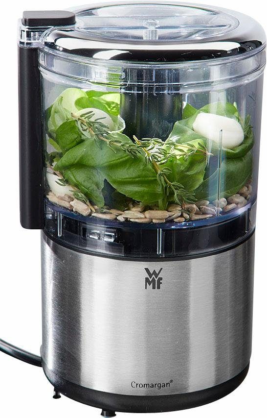 Впередe Vorteile | Всі abnehmbaren Teile sind spülmaschinengeeignet (Behälter, Deckel, Messer) Hochwertiges 2-flügliges Edelstahlmesser mit WMF Perfect Cut Technologie, herausnehmbar Komfortable Einhandbedienung Kompakter, platzsparender Zerkleinerer aus Cromargan® matt Sicherheitsverschluss zur Inbetriebnahme nur bei aufgesetztem Deckel Zerkleinerungsbehälter (0,3 l), abnehmbar Zum Zerkleinern von Kräutern, Nüssen, Käse, Schokolade, Zwiebeln usw. |