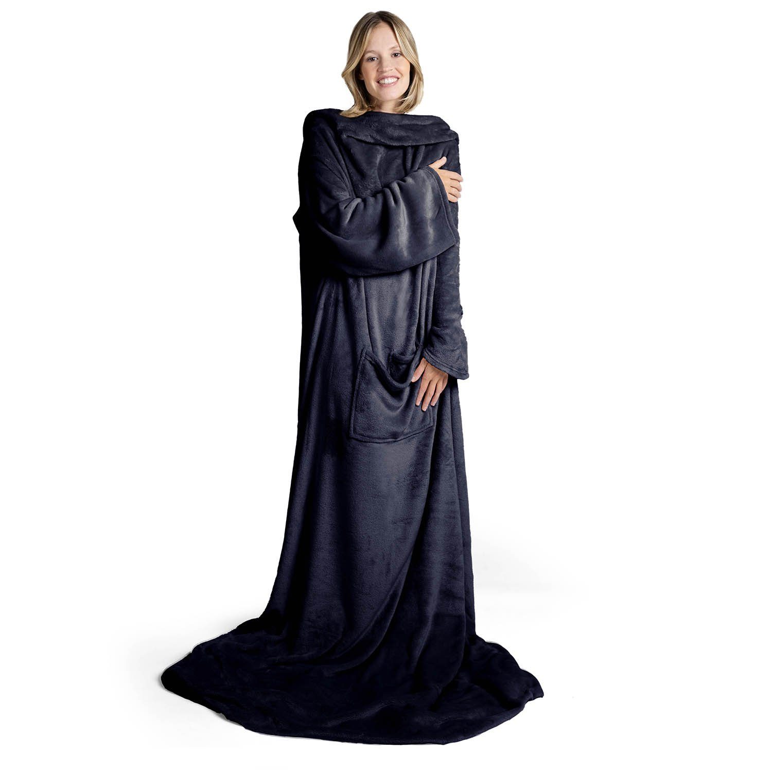 Sehr angenehmer weicher Stoff. Grösse gut um sich drin einzuwickeln am Schreibtisch oder vor dem Fernseher.