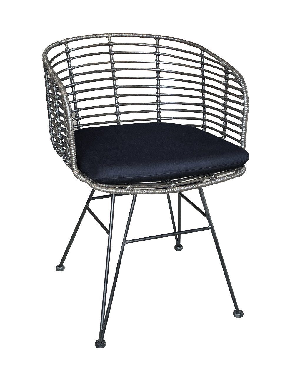 BALI Eisenstuhl CEKO Armlehne mit Rattan inkl. Kissen schwarz