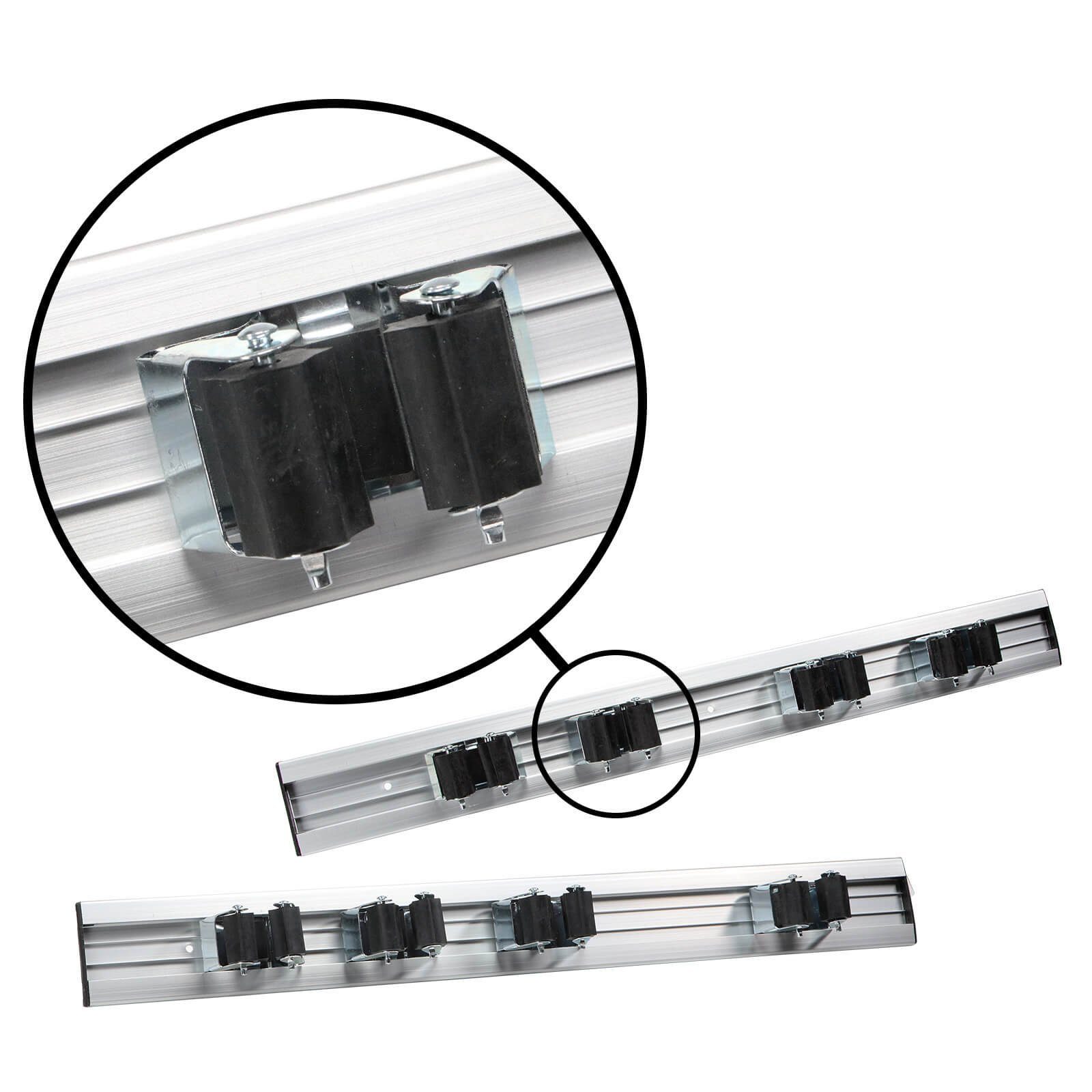 Der Werkzeug und Besen Wandhalter auf Aluschiene ist die perfekte Lösung für die organisierte Aufbewahrung Ihrer Werkzeuge, Besen und Gartengeräte mit Rundstielen. Diese innovative Aufbewahrungslösung wurde entwickelt, um Ihren Raum effizient zu nutzen und gleichzeitig Ihre Werkzeuge sicher und leicht zugänglich zu halten. Die robuste Aluschiene sorgt für Stabilität und Langlebigkeit, während die vier verschiebbaren Klemmhalter eine flexible Anpassung an verschiedene Werkzeuge ermöglichen.
