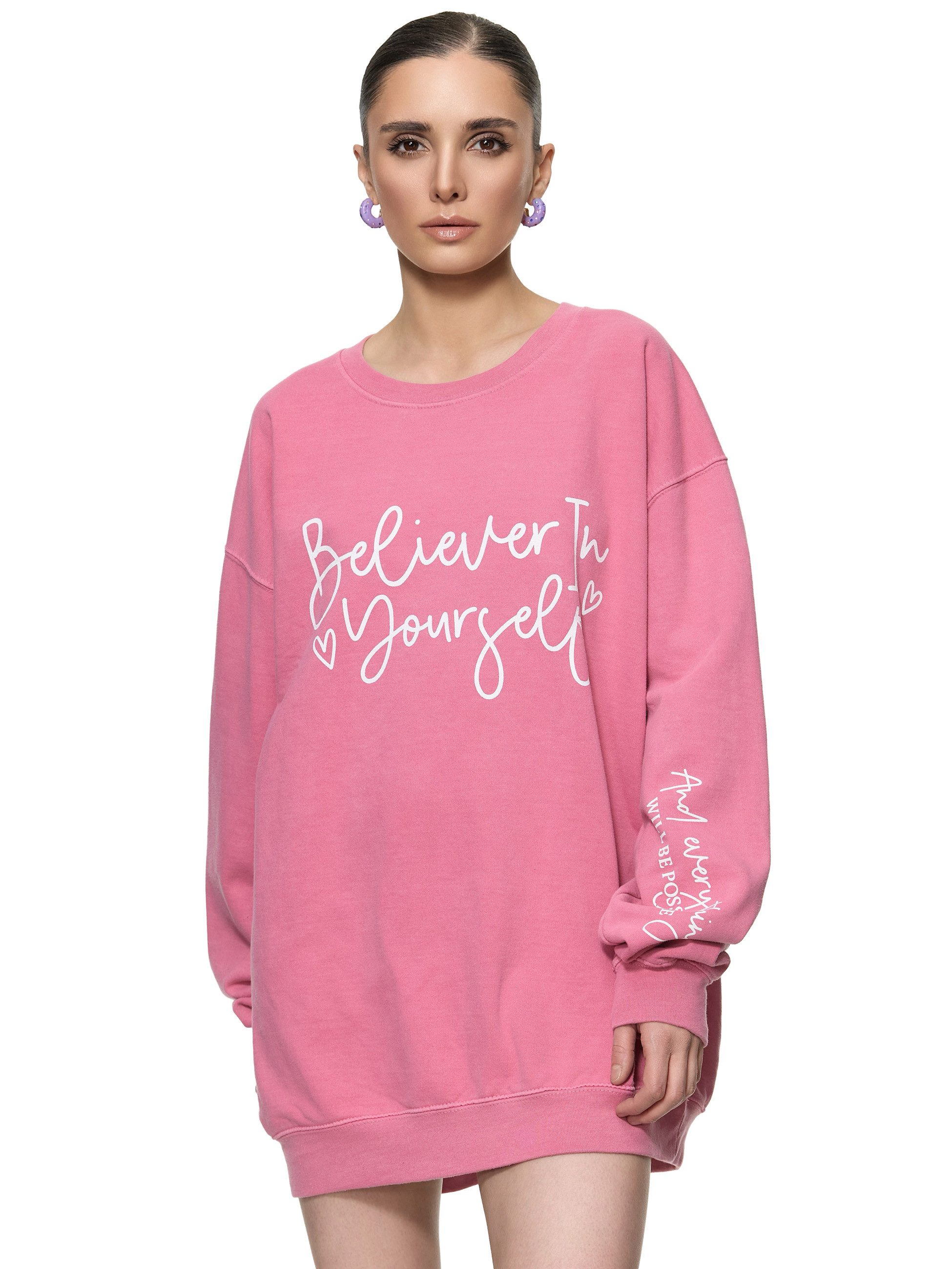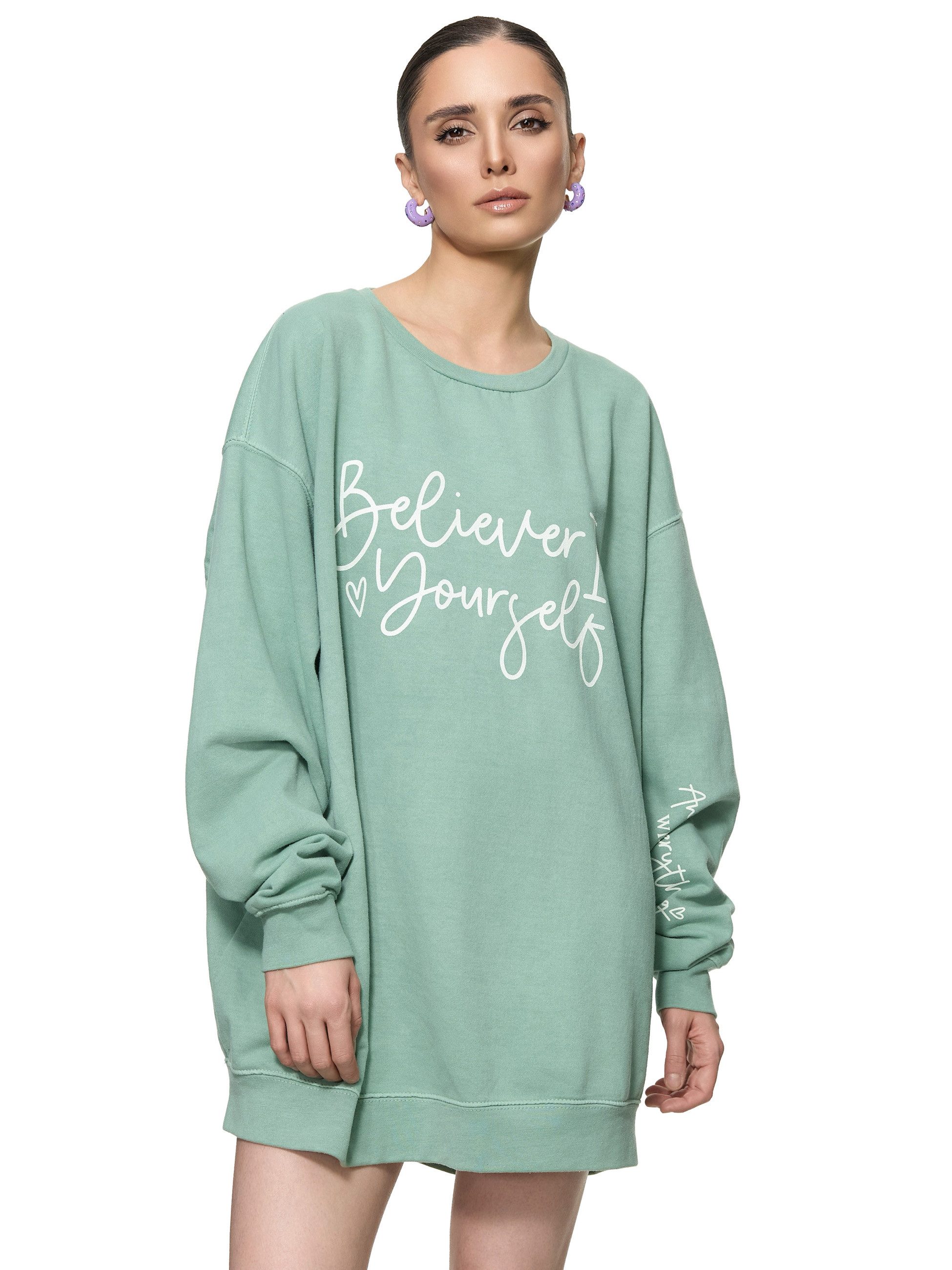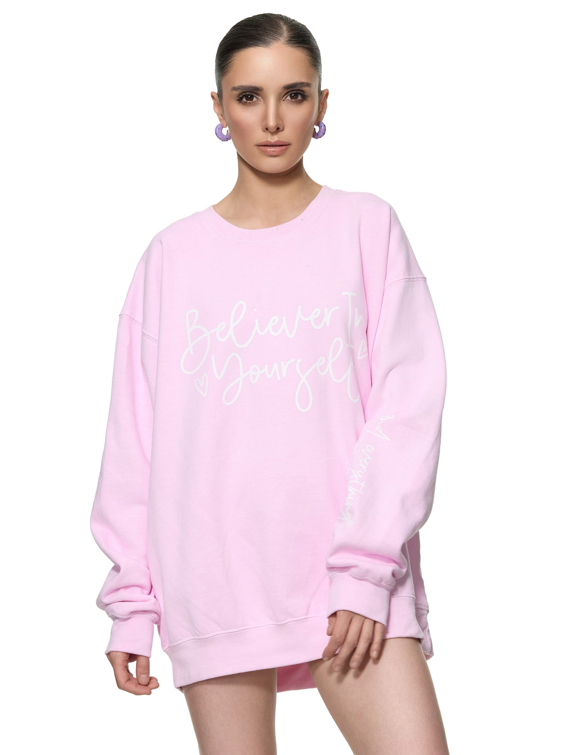 Entdecken Sie unser Damen Oversized Sweatshirt, das perfekte Kleidungsstück für Ihren Freizeit-Look. Dieses vielseitige Sweatshirt ist in Einheitsgröße erhältlich und passt bequem Größen von 36 bis 42 (S bis XL). Eigenschaften: • Einheitsgröße: Passt perfekt für Größen 36 bis 42 oder S bis XL. • Stil: Ideal für Streetwear und Loungewear, lässt sich sowohl sportlich als auch modisch kombinieren. • Qualität: Hergestellt aus hochwertigem Material für hervorragende Passform und Tragekomfort. • Design: Mit stylischem Print "BELIVE IN YOURSELF" auf der Vorderseite und am Ärmel "AND EVERYTHING WILL BE POSITIVE " • Zustand: Neu und originalverpackt. Erleben Sie Top-Qualität und ein modisches Design, das sich mühelos in jede Garderobe integrieren lässt. Perfekt für jede Gelegenheit, ob entspannt zu Hause oder unterwegs. Bestellen Sie jetzt und bereichern Sie Ihren Kleiderschrank mit diesem Must-Have Sweatshirt!