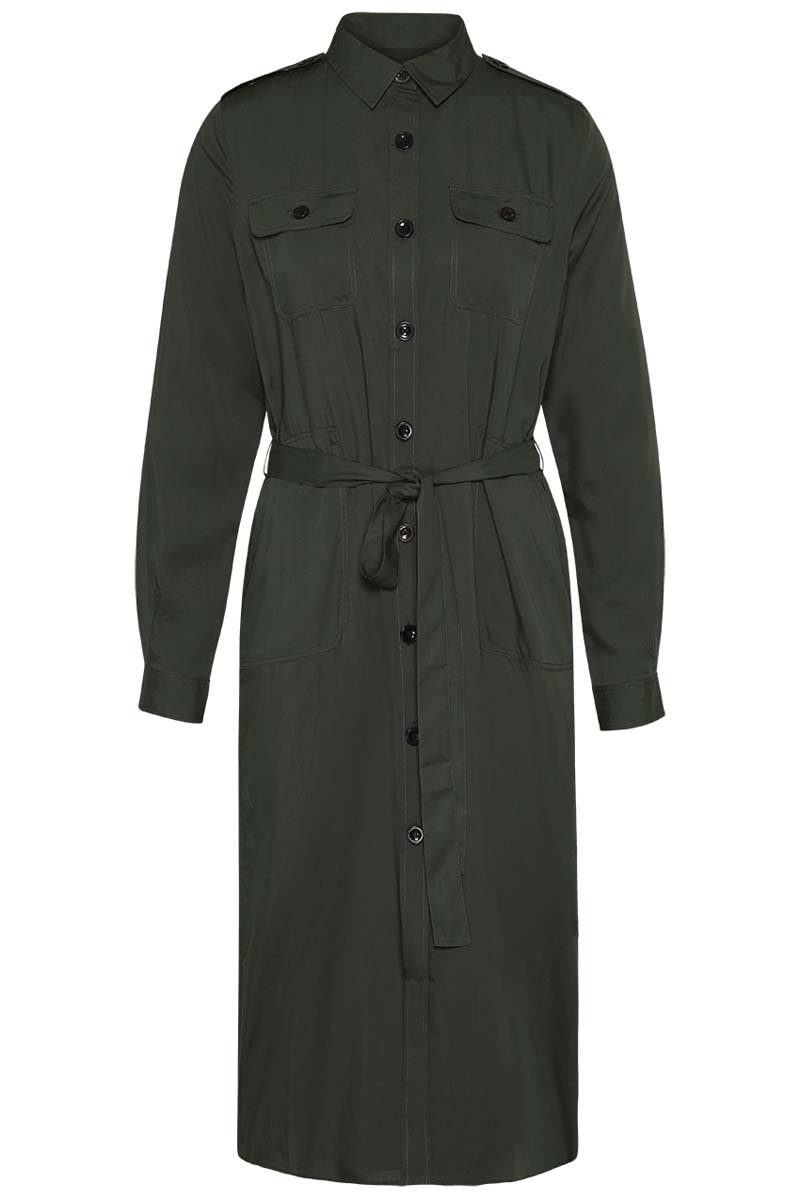 Leichtes, fließendes Kleid mit Utility Elementen. Aufgesetzte Brusttaschen und Steinnußknöpfen kreieren einen besonderen Look. Mit den langen Ärmeln und dem knielangen Rockteil kann es das ganze Jahr getragen werden.