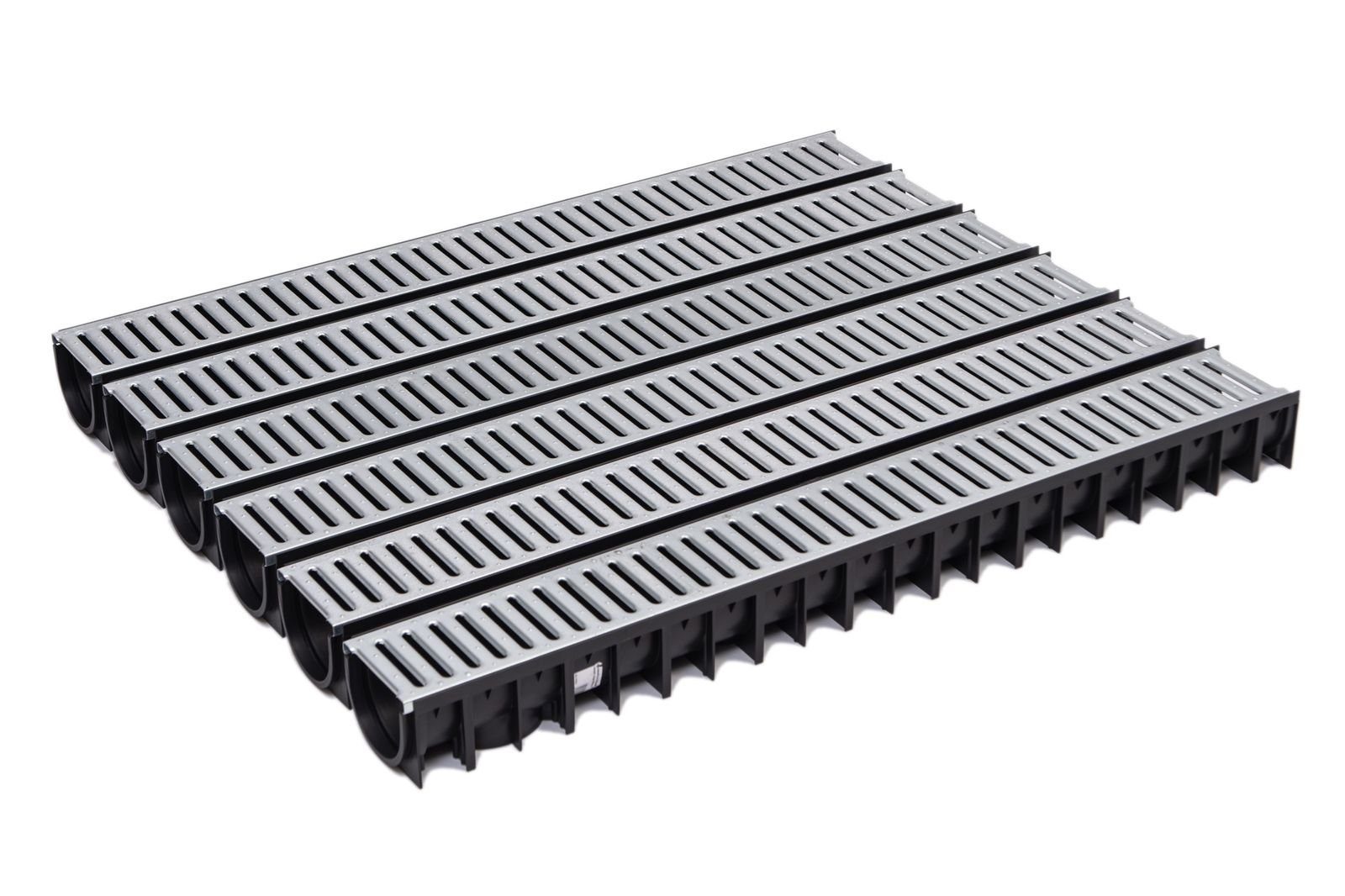 6x Xanie Kunststoff Entwässerungsrinne schwarz mit Stegrost Stahl verzinkt 1m Art. Nr. 319701 - EAN: 8032738671827
